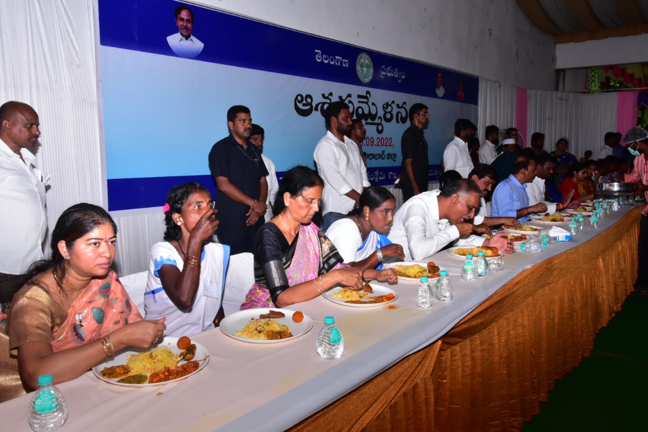 అంతకుముందు మంత్రి హరీష్ రావు తెలంగాణ కవి కాళోజీకి నివాళులు అర్పించారు. అనంతరం మంత్రి హరీష్ రావు ఆశ సర్కర్లతో కలిసి సహపంక్తి భోజనం చేశారు. ఈ కార్యక్రమంలో వైద్య ఆరోగ్య శాఖ డైరెక్టర్ శ్రీనివాస్ రెడ్డి, మాతా శిశు సంక్షేమ శాఖ అధికారి శ్వేతా మహంతి, జిల్లా పరిషత్ చైర్ పర్సన్ పట్నం సునితా మహేందర్ రెడ్డి, జిల్లా కలెక్టర్ కె.నిఖిల, జిల్లా గ్రంథాలయ సంస్థ చైర్మన్ రాజుగౌడ్, మున్సిపల్ చైర్ పర్సన్ స్వప్న పరిమళ్, వైస్ చైర్ పర్సన్ పట్లోళ్ల దీపా నర్సింలు, మార్కెట్ కమిటి చైర్మన్ విఠల్ నాయక్, టీఆర్ఎస్ పట్టణ అధ్యక్షులు అఫ్పూ(నయూం) తదితరులు పాల్గొన్నారు.