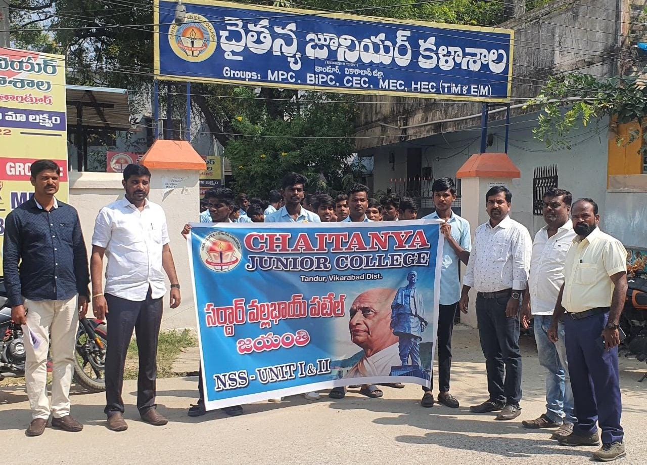 తాండూరు, దర్శిని ప్రతినిధి: ఉక్కుమనిషి సర్దార్ వల్లభాయ్ పటేల్ జయంతిని పురస్కరించుకొని సోమవారం తాండూరు చైతన్య జూనియర్ కళాశాలలో జాతీయ ఐక్యత వేడుకలను నిర్వహించారు. ఎన్ఎస్ఎస్ యూనిట్ ఆధ్వర్యంలో విద్యార్థులు సమైక్య ర్యాలీ నిర్వహించారు. ఈ సందర్భంగా నిర్వహించిన కార్యక్రమంలో కరస్పాండెంట్ పెరుమాళ్ల వెంకట్ రెడ్డి, డైరెక్టర్ ప్రశాంత్ కుమార్ మాట్లాడుతూ సమరసత సమైక్యతకు మారుపేరుగా నిలిచి 545 సంస్థానాలను భారతదేశంలో కలుపుటకు పటేల్ కృషి చేశారని తెలిపారు. సమైక్య భారతదేశానికి శ్రమించిన వల్లభాయ్ పటేల్ దేశ తొలి హోం శాఖ మంత్రిగా ప్రజలకు ఎనలేని సేవలు చేశారని పేర్కొన్నారు. పటేల్ సేవలను గుర్తించి భారత ప్రభుత్వం అక్టోబర్ 31 జాతీయ ఐక్యత దినోత్సవం పేరుతో ఉత్సవాలు చేయడం అభినందనీయమన్నారు. అనంతరం ‘‘దేశ ఐకమత్యం, సమగ్రత, భద్రతను కాపాడటానికి స్వయంగా అంకితమవుతానని సత్యనిష్టతో ప్రతిజ్ఞ చేశారు. కార్యక్రమంలో అధ్యాపకులు, విద్యార్థులు పాల్గొన్నారు.