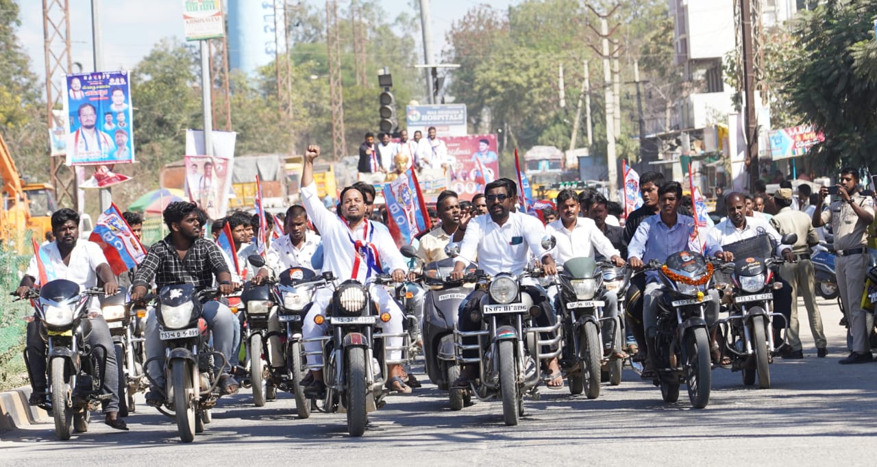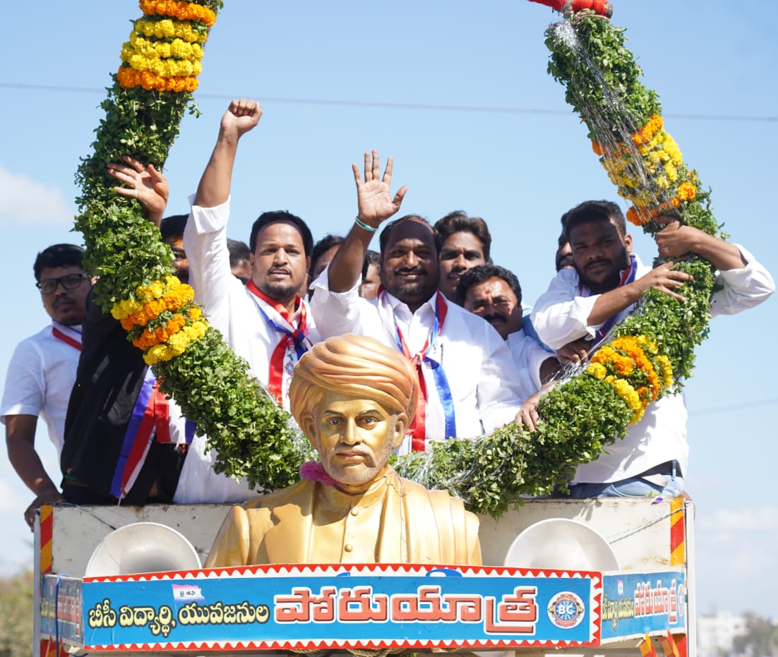 మరోవైపు బీసీ విద్యార్ధి యువజన సంఘాల ఆధ్వర్యంలో పాలమూరు నుంచి పట్నం వరకు 33 జిల్లాలో చేపట్టిన పోరుయాత్రకు బీసీ విద్యార్థి, యువజన సంఘం రాష్ట్ర కార్యనిర్వహక అధ్యక్షులు ఈడిగ శ్రీనివాస్ ఆధ్వర్యంలో ఘన స్వాగతం పలికారు. పట్టణంలోకి ప్రవేశించిన పోరుయాత్రకు బైక్ ర్యాలీతో స్వాగతించి ముందుకు సాగారు. ర్యాలీలో భాగంగా ఇందిరా చౌరస్తాలో జాతీయ అధ్యక్షులు జాజుల శ్రీనివాస్ గౌడ్ కు భారీ గజమాలతో సత్కరించారు. అక్కడి నుంచి అంబేద్కర్ చౌరస్తా వరకు చేరుకుని అక్కడ అంబేద్కర్ నిగ్రహానికి పూలమాల వేసి నివాళులు అర్పించారు. అనంతరం ర్యాలీ ఎంపీటీ హాల్ వరకు ఉత్సహాంగా కొనసాగింది. ఈ కార్యక్రమంలో బీసీ యువజన సంఘం రాష్ట్ర అధ్యక్షులు కనకాల శ్యాం, విద్యార్థి సంఘం రాష్ట్ర అధ్యక్షులు కుల్కచర్ల శ్రీనివాస్, కేంద్ర అధ్యక్షులు విక్రమ్ గౌడ్, బీసీ సంఘం రాష్ట్ర వర్కింగ్ ప్రెసిడెంట్ రవికృష్ణ, విద్యావంతుల వేదిక నాయకులు పర్యాద రామకృష్ణ, నర్సింహా నాయక్, అనిల్ కుమార్, వీరేశం, శ్రీకాంత్, శివగౌడ్ తదితరులు పాల్గొన్నారు.