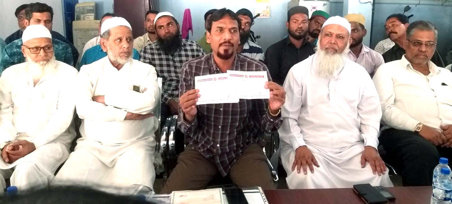 ఈనెల 14న మదీన మసీదులో ముస్లిం వెల్ఫేర్ అసోసియేషన్ నూతన అధ్యక్షులుగా కమల్ ఆతహర్, ప్రధాన కార్యదర్శి ఖాలిద్ సైఫ్ ఉల్లా, మహమ్మద్ యూనుస్ లు ఎన్నికైనట్లు వచ్చిన ప్రకటనలో వాస్తవం లేదన్నారు. వారితో ముస్లిం అసోసియేషన్ కు సంబంధం లేదన్నారు. ముస్లిం వెల్ఫేర్ అసోసియేషన్ చట్టానికి విరుద్ధంగా ఎన్నికలు నిర్వహించారని, కావున వారి ఎన్నిక చెల్లదన్నారు. నిజమైన ముస్లిం వెల్ఫేర్ అసోసియేషన్ 6607/1997తో రెజిస్ట్రేషన్ చేయబడిందని గుర్తుచేశారు. అప్పటి నుంచి పలు దఫాలుగా ఎన్నుకున్న కార్యవర్గానికి రిజిస్ట్రేషన్ చేయడం జరిగిందన్నారు. ఇటీవల చేయబడిన రిజిస్ట్రేషన్ మేరకు అసోసియేషన్ అధ్యక్షులుగా మహమ్మద్ ఖుర్షీద్ హుస్సేన్, ఉపాధ్యక్షులుగా అబ్దుల్ రహమాన్ ముజాహిద్, మహమ్మద్ జైనోద్దీన్, ప్రధాన కార్యదర్శిగా అబ్దుల్ హాది షహేరీలు ఉన్నారని, గత యేడాది రెన్యూవల్ చేసిన ఈ కార్యవర్గ పదవి కాలం 2027 వరకు కొనసాగుతుందని వివరించారు, కావున కొత్త కార్యవర్గం ఎన్నిక చెల్లుబాటు కాదన్నారు. అదేవిధంగా వారు ముస్లిం అసోసియేషన్ పేరుతో అక్రమాలకు పాల్పడుతున్నారని ఆరోపించారు. నిబంధనలకు విరుద్ధంగా అసోసియేషన్ సభ్యత్వ నమోదు చేస్తున్నారని ఆరోపించారు. ఈ అక్రమాలపై జిల్లా ఎస్పీ కోటిరెడ్డి, తాండూరు డీఎస్పీ శేఖర్ గౌడ్, పట్టణ సీఐ రాజేందర్ రెడ్డిలకు ఫిర్యాదు చేస్తామని తెలిపారు. కొత్త కార్యవర్గంను పక్కన పెట్టి త్వరలోనే నిబంధనల మేరకు సబ్ కమిటి కొత్త కార్యవర్గాన్ని ఎన్నుకుంటామన్నారు. ఈ కార్యక్రమంలో జాయింట్ సెక్రటరీ జమీల్ హైమద్, కోశాధికారి అబ్దుల్ సత్తార్, లాయకత్ అలీ, షౌకత్ పటేల్ తదితరులు పాల్గొన్నారు.