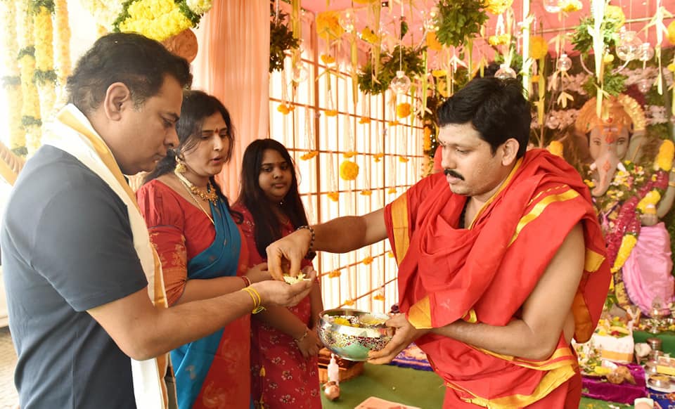 – పూజలో పాల్గొన్న మంత్రి కేటీఆర్, ఎంపీ సంతోష్కుమార్