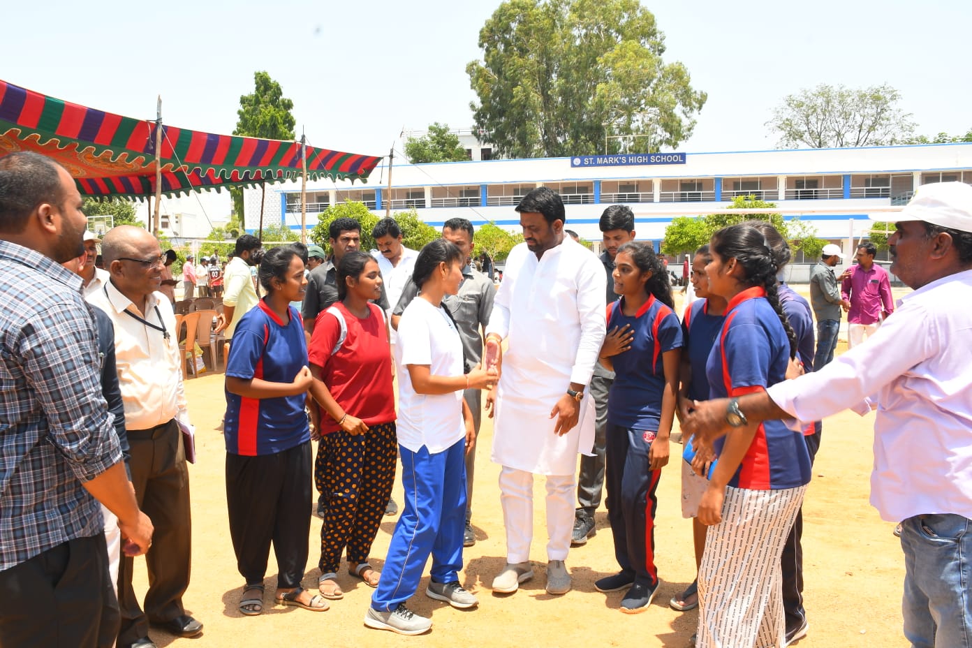 తాండూరు, దర్శిని ప్రతినిధి : తెలంగాణ ప్రభుత్వం ప్రతిష్టాత్మకంగా చేపట్టిన సీఎం కప్‌ పోటీలు తాండూరులో పండగలా ప్రారంభమయ్యాయి. సోమవారం తాండూరు పట్టణం సెయింట్ మార్క్స్‌ స్కూల్లో ఏర్పాటు చేసిన పోటీలసు ఎమ్మెల్యే పైలెట్ రోహిత్ రెడ్డి ముఖ్య అతిథిగా హాజరై ప్రారంభించారు. మండల స్థాయిలో ఏర్పాటు చేసిన ఈ క్రీడా పోటీలకు తాండూరు మండలం, పట్టణం నుంచి వివిధ ప్రాంతాల నుంచి క్రీడాకారులు తరలివచ్చారు. ఎమ్మెల్యే రోహిత్ రెడ్డి క్రీడాకారులకు కరచాలనం చేశారు. అనంతరం ఎమ్మెల్యే రోహిత్ రెడ్డి ఉత్సహాంగా పోటీలను ప్రారంభించారు.
