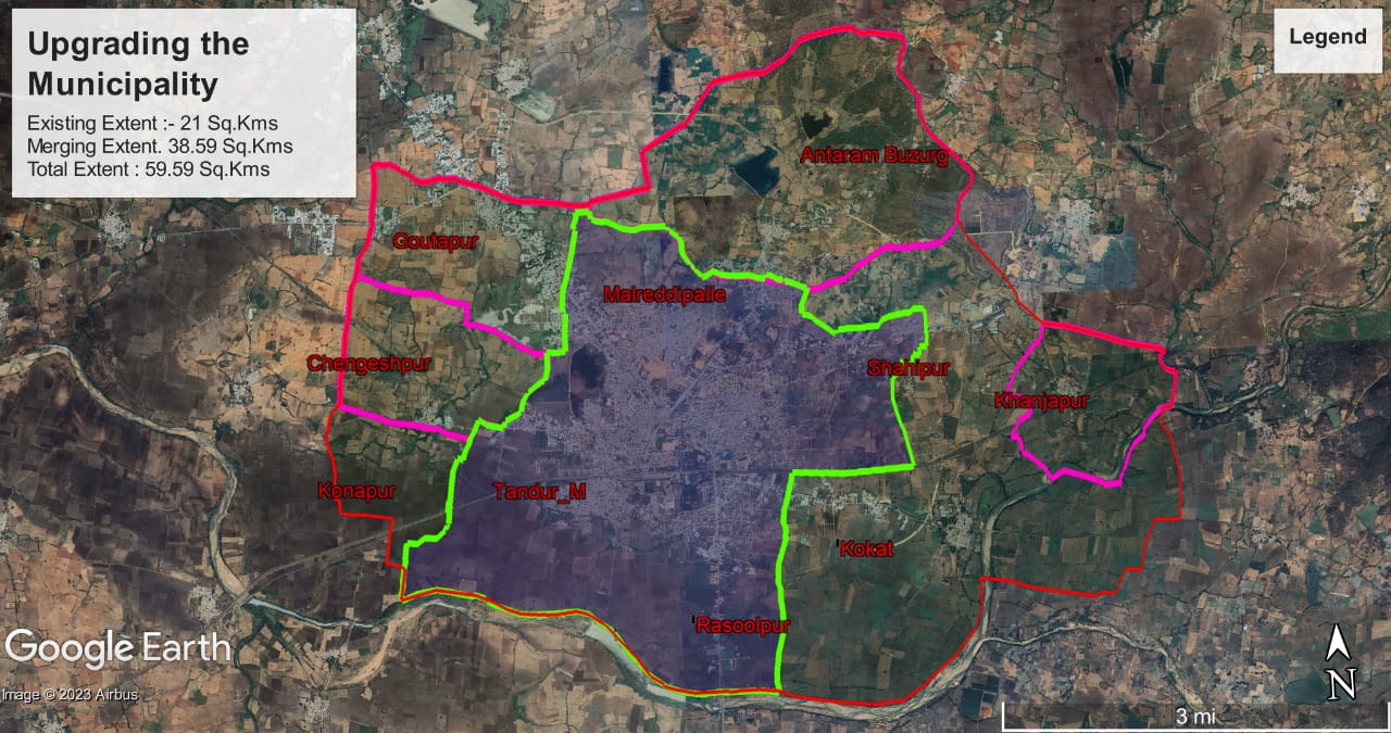 ఇందుకు అధికార యంత్రాంగం కసరత్తును చేస్తోంది. ప్రస్తుతం 36మంది కౌన్సిలర్లు ఉండగా, ఈసంఖ్య 50 దాటే ఛాన్స్ ఉంటుంది. పట్టణ పరిధి కూడా విస్తరిస్తోంది. పట్టణ జనాభాతోపాటు శివారులో ఉన్న గ్రామాలను కలిపి కార్పొరేషన్ను ఏర్పాటు చేసే అవకాశం ఉంది. గతంలో ఎన్టీఆర్కాలనీ, రాజీవ్ గృహకల్ప, ఇందిరమ్మ కాలనీ, రసూల్పూర్ ఆంజనేయస్వామి ఆలయం, కోకట్ రోడ్డు సాయిబాబా మందిర ప్రాంతాలు విలీనమయ్యాయి. తాజాగా గౌతాపూర్, అంతారం, అంతారంతండా, ఖాంజాపూర్, కోకట్, అల్లాపూర్(ఎస్), చెనిగే్షపూర్, కోణాపూర్, గోపన్పల్లి, బషీర్మియాతండా, కందనెల్లి గ్రామాలు విలీనం అయ్యే అవకాశాలు ఉన్నాయి. దీంతో లక్ష జనాభా, ఆదాయం, వసతులను, అర్హతలతో తాండూరు మున్సిపాలిటీ స్థాయి నుంచి కార్పొరేషన్ స్థాయి అప్గ్రేడ్ కాబోతోంది.