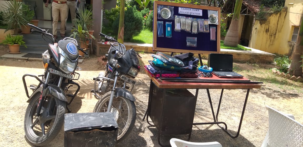 మరోవైపు నిందితుల్లో నవీస్, శ్రీనివాస్, సంజీవ, డబ్బా సంజీవలు కర్ణాటకలోని ముదేళ్ల పోలీస్టేషన్ పరిధిలో 2 దొంగతనాలు, వికారాబాద్ జిల్లాలోని కోడంగల్ ప్రాంతాల్లో చోరీలకు 3 దొంగతనాలకు పాల్పడినట్లు కేసులు ఉన్నాయని డీఎస్పీ వివరించారు. కోడంగల్ పట్టణంలో మే 26, 27 తేదిలలో వరుస చోరీలు, గత నెల జూలై 7, 9వ తేదిలలో చోరీలకు పాల్పడి నగదుతో పాటు వెండి వస్తువులు, లాప్ టాప్, మోబైల్ ఫోన్లు చోరీ చేశారని వివరించారు. అయితే రాత్రిళ్లు మాత్రమే చోరీ చేసే ప్రాంతాన్ని ఎంచుకుంటారని, వెంట తెచ్చుకున్న గడ్డపారతో షెట్టర్లను ధ్వసం చేసి దొరికిన వాటికి ఎత్తుకెళ్లడమే వీళ్ల ప్రత్యేకత అని తెలిపారు. 6వ దొంగతనంగా తాండూరులో చోరీకి పాల్పడి పోలీసులకు చిక్కారని తెలిపారు.