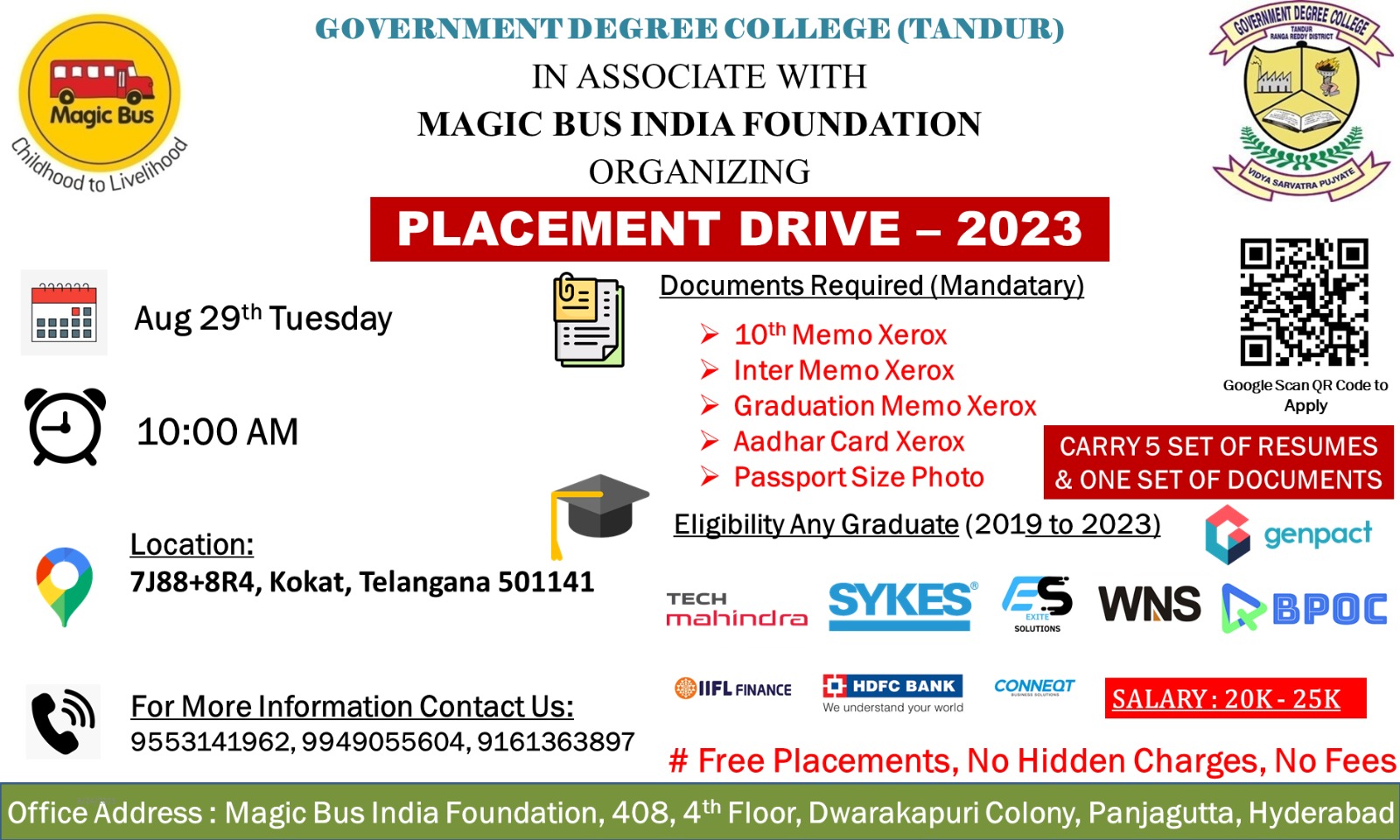 – ఎల్లుండి డిగ్రీ కాలేజీలో జాబ్ మేళా