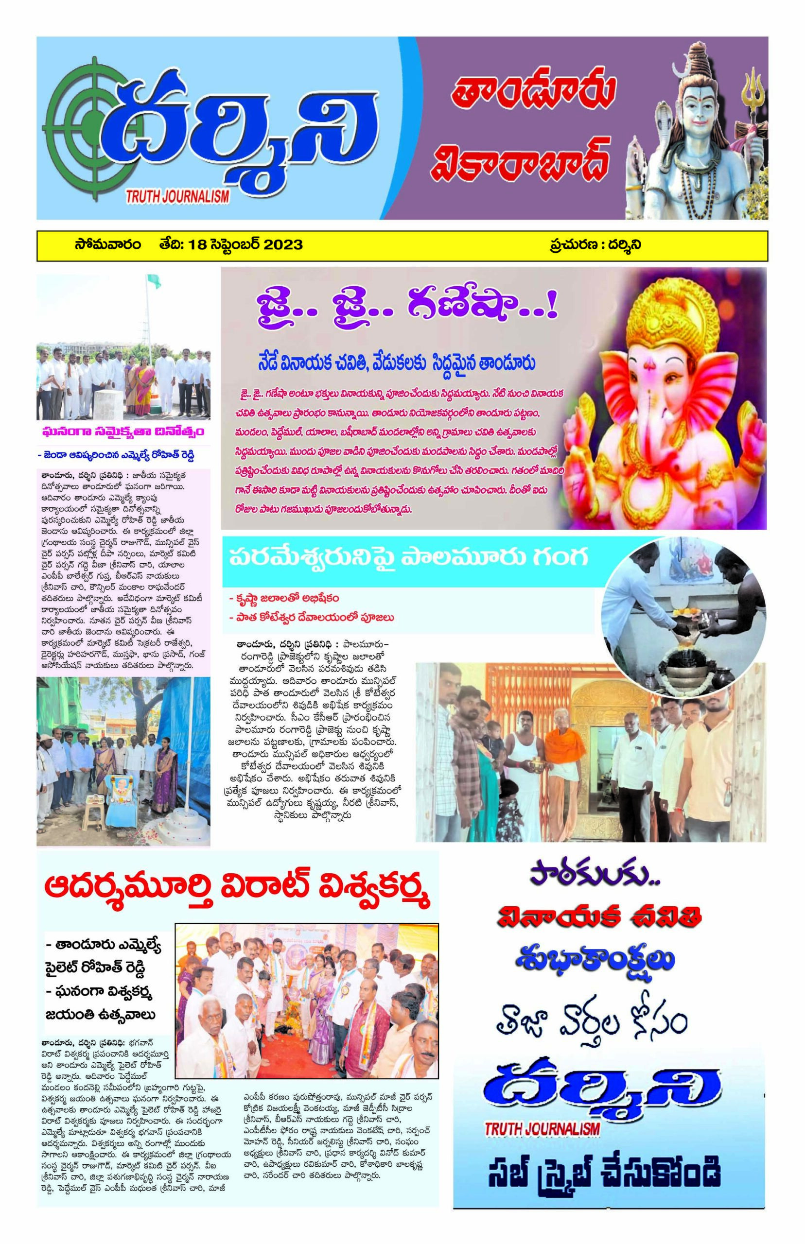 dharshini sep-18 epaper తాండూరు తెలంగాణ వికారాబాద్ 18-09-2023 dharshininews Share this post: Download as Image Generating image...