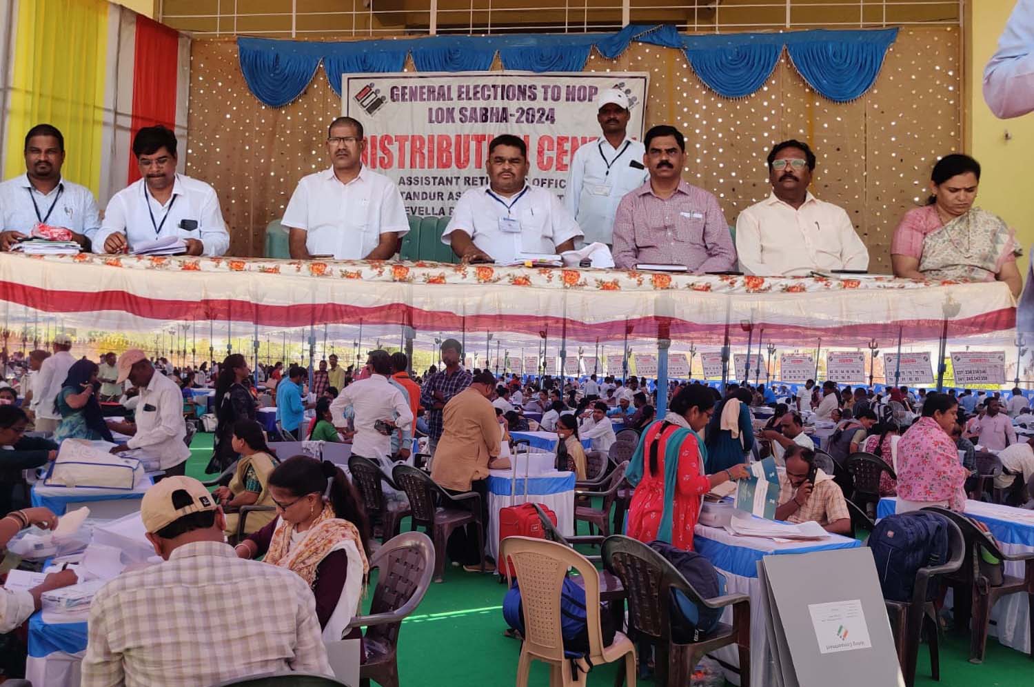 తాండూరు, దర్శిని ప్రతినిధి : రేపు జరిగే పార్లమెంట్ పోలింగ్ కోసం తాండూరులో అన్ని ఏర్పాట్లను పూర్తి చేశారు. ఆదివారం తాండూరు అసెంబ్లీ సెగ్మెంట్కు సంబంధించి పోలింగ్ సామాగ్రిని పంపిణీ చేపట్టారు. తాండూరు ఆర్డీఓ, ఎన్నికల సహాయ అధికారి శ్రీనివాస్ రావు ఆధ్వర్యంలో ఈ పంపిణీ కార్యక్రమం జరిగింది. తాండూరు నియోజకవర్గంలో 26 సెక్టార్లలో దాదాపు 1400ల మంది ఎన్నికల సిబ్బందిని నియమించారు.