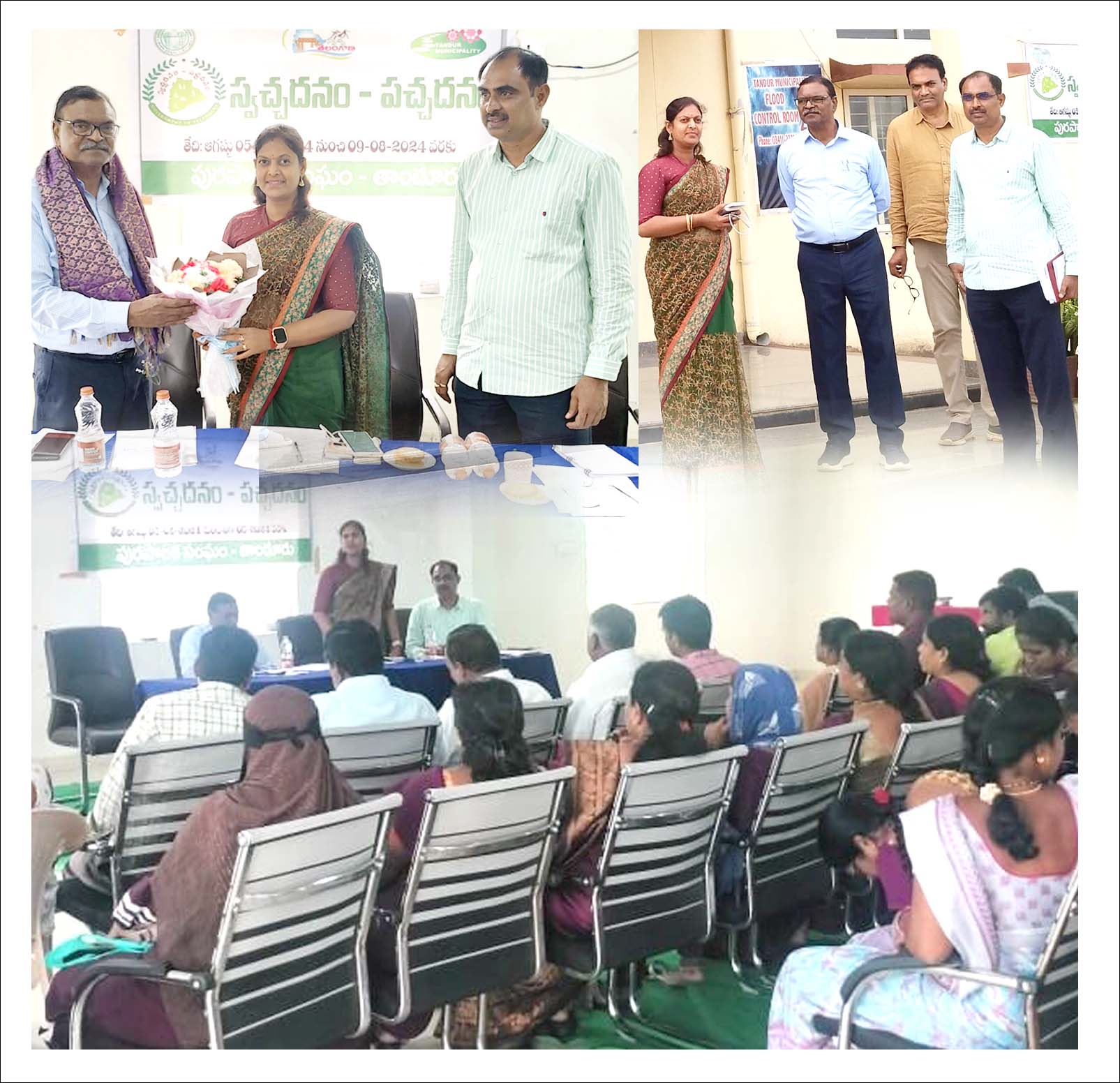 తాండూరు, దర్శిని ప్రతినిధి : ప్రభుత్వం చేపడుతున్న స్వచ్ఛదనం – పచ్చదనం కార్యక్రమాన్ని విజయవంతం చేయడమే లక్ష్యంగా అందరు పనిచేయాలని కార్యక్రమ ప్రత్యేకాధికారి, సీడీఎంఏ ఏడీ జాన్‌ శ్యాంసన్ సూచించారు. గురువారం తాండూరు మున్సిపల్ కార్యాలయాన్ని ఆయన సందర్శించారు. మున్సిపల్ చైర్ పర్సన్ స్వప్న పరిమళ్, కమీషనర్ విక్రమ్ సింహారెడ్డిల అధ్యక్షతన అధికారులు, వార్డు ఆపీసర్లు, సిబ్బందితో స్వచ్ఛదనం – పచ్చదనం కార్యక్రమంపై సమీక్ష నిర్వహించారు. ఈనెల 5 నుంచి ప్రారంభమైన కార్యక్రమంలో ఇప్పటి వరకు ఎలాంటి పనులు చేపట్టారు..? ఎలాంటి చర్యలు తీసుకుంటున్నారని అడిగి తెలుసుకున్నారు. అనంతరం ఆయన మాట్లాడుతూ ప్రభుత్వం చేపట్టిన స్వచ్ఛదనం – పచ్చదనం కార్యక్రమం నిరంతరం కొనసాగించే అవకాశం ఉందని అన్నారు.