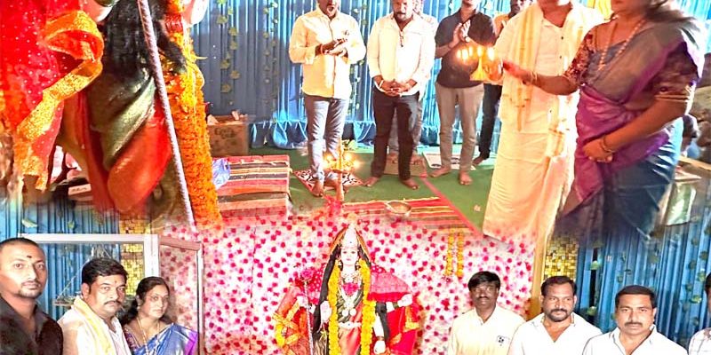దుర్గమ్మా.. సల్లంగా చూడమ్మా..! – అమ్మవారిని పూజించిన శంకర్ యాదవ్ – సతీ సమేతంగా అమ్మవారి దర్శనం – భక్తులకు అన్నదానం తాండూరు, దర్శిని ప్రతినిధి : అమ్మా దుర్గమ్మా.. అందరిని సల్లంగా చూడమ్మా అంటూ తాండూరుకు చెందిన ప్రముఖు రియల్ ఏస్టేట్ వ్యాపారి, శ్రీ సాయిపుత్ర హోమ్స్ అండ్ డెవలపర్స్ అధినేత భావనోళ్ల శంకర్ యాదవ్ అమ్మవారిని వేడుకున్నారు. శరన్నవరాత్రుల సందర్భంగా పట్టణంలోని బసవణ్ణ కట్ట వద్ద ప్రతిష్టించిన దుర్గామాతను శంకర్ యాదవ్, సతీమణి చంద్రకళ, … Continue reading దుర్గమ్మా.. సల్లంగా చూడమ్మా..!