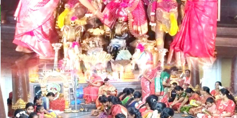మహాలక్ష్మీ మాత పాహిమాం..! – పరవసిస్తున్న నగరేశ్వర దేవాలయం – జోరుగా శరన్నవరాత్రి ఉత్సవాలు తాండూరు, దర్శిని ప్రతినిధి : మహాలక్ష్మీ మాతా పాహీమాం అంటూ ఆర్యవైశ్యులు వారి ఆరాధ్యదైవమైన వాసవీ కన్యకా పరమేశ్వరీ మాతను వేడుకుంటున్నారు. పట్టణంలోని నగేశ్వర దేవాలయంలో శరన్నవరాత్రి ఉత్సవాలు జోరుగా కొనసాగుతున్నాయి. వాసవీ మహిళ సంఘం ఆధ్వర్యంలో అనుబంధాల సంఘాల సహాకారంతో ఉత్సవాలను నిర్వహిస్తున్నారు. ప్రతిరోజూ అమ్మవారికి ప్రత్యేక అలంకరణలు, పూజలతో నగరేశ్వర దేవాలయంలో భక్తులు పరవశించి పోతున్నారు. శరన్నవరాత్రుల ఉత్సవాలలో … Continue reading మహాలక్ష్మీ మాత పాహిమాం..!