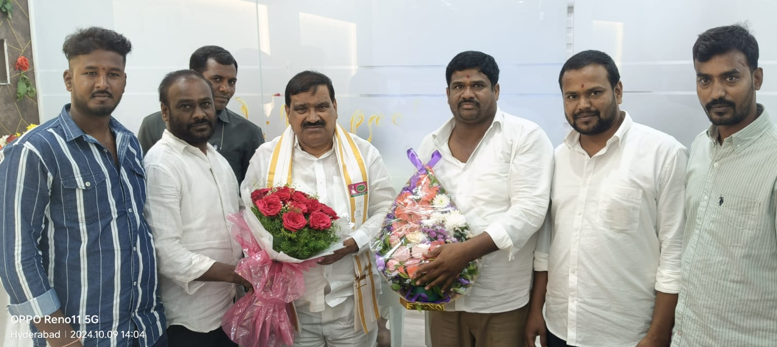 తాండూరు, దర్శిని ప్రతినిధి: తెలంగాణ రాష్ట్ర ప్రభుత్వ విప్, ఉమ్మడి రంగారెడ్డి జిల్లా ఎమ్మెల్సీ పట్నం మహేందర్ రెడ్డిని తాండూరు నాయకులు కలిశారు. బుధవారం తెలంగాణ రాష్ట్ర విప్ గా బాధ్యతలు స్వీకరించిన సందర్భంగా తాండూరు నాయకులు బిడ్కర్ రఘు తదితరులు మహేందర్ రెడ్డిని మర్యాద పూర్వకంగా కలిశారు. మహేందర్ రెడ్డికి పుష్ప గుచ్చం అందించి శుభాకాంక్షలు తెలిపారు. ఈ కార్యక్రమంలో తాండూరు పట్టణ యువకులు ఉన్నారు.