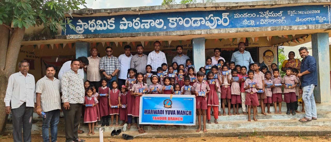 తాండూరు, దర్శిని ప్రతినిధి : ప్రభుత్వ పాఠశాలల విద్యార్థులలో తాండూరు మార్వాడి యువమంచ్ దీపావళీ జోష్ నింపింది. ప్రతి యేడాది దీపావళీ సందర్భంగా ఆల్ ఇండియా మార్వాడి యువమంచ్ ఆదేశాల మేరకు తాండూరు శాఖ ఆధ్వర్యంలో ముందస్తు దీపావళీ సంబరాలు నిర్వహించే సంప్రదాయం కొనసాగిస్తోంది. ఇందులో భాగంగా రాబోయే దీపావళీ పండగను పురస్కరించుకుని శనివారం మార్వాడి యుమంచ్ ఆధ్వర్యంలో ముందస్తు దీపావళీ సంబరాలను అట్టహాసంగా నిర్వహించింది.