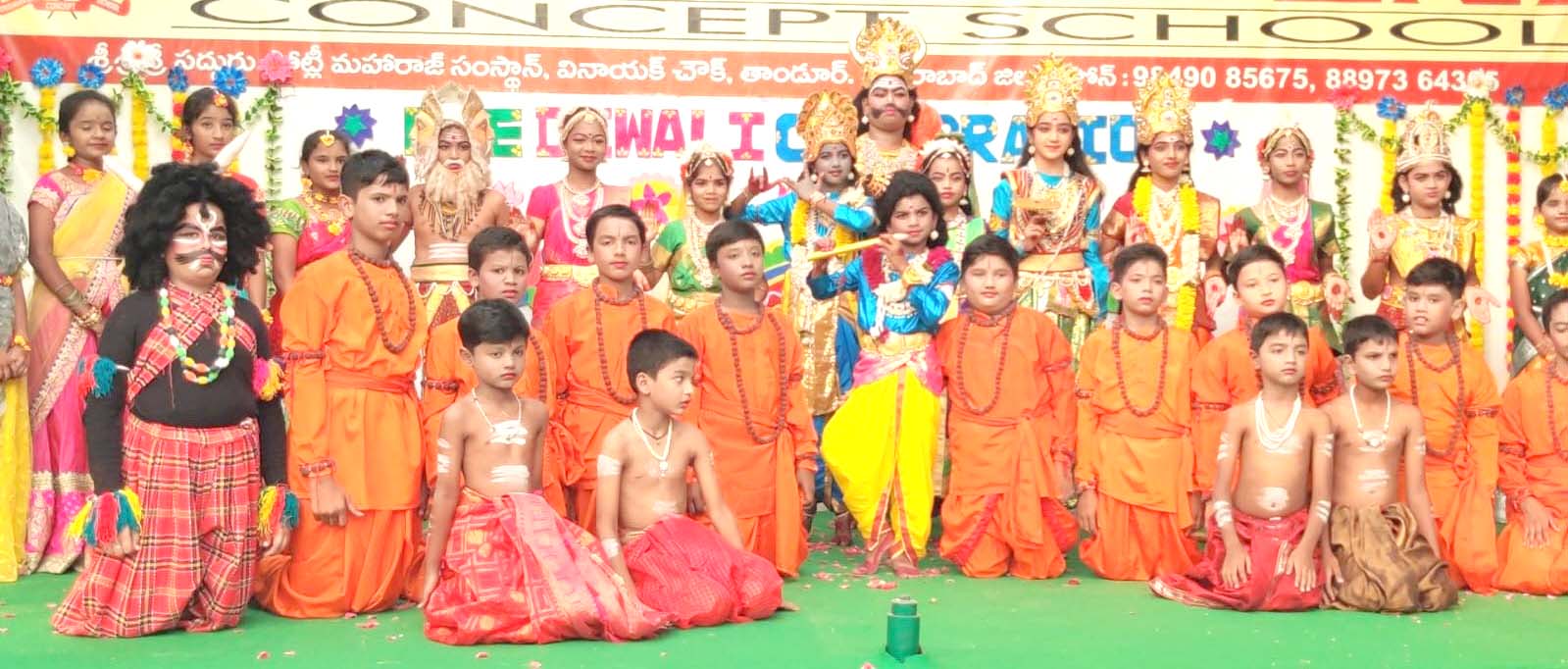 తాండూరు, దర్శిని ప్రతినిధి : తాండూరు పట్టణం పోటీ మహరాజ్ దేవాలయ ఆవరణలో ఉన్న కృష్ణవేణి కాన్సెప్ట్ హై స్కూల్(కేవీసీఎస్)లో బుధవారం దీపావళీ జోష్ నిండింది. పండగను పురస్కరించుకుని స్కూల్లో ఉత్సహాంగా సంబరాలను జరుపుకున్నారు. సంబరాలలో భాగంగా విద్యార్థులు నరకాసుర వధ నాటక ప్రదర్శనను నిర్వహించారు. వేషాధారణలతో.. హావ భావాలతో నాటక ప్రదర్శన రంజింపజేసింది. అదేవిధంగా నరకాసుర దహన కార్యక్రమం కూడా ఆకట్టుకుంది.