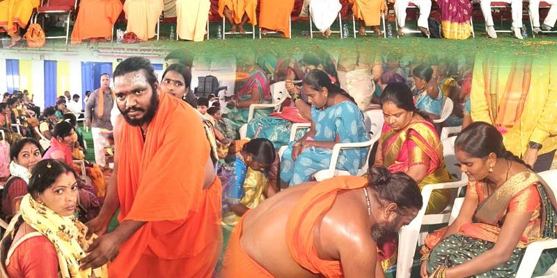 స్త్రీలు దేవతలతో సమానం..! – సనాతన ధర్మంలో కుల జాతి బేధాలు లేవు – వేద విజ్ఞానం స్త్రీ, పురుషులకు సిద్దించింది – ముత్తదువల పాదపూజలో స్వామీజీలు – దళిత మహిళలకు పాదపూజ చరిత్రలో తొలిసారి తాండూరు, దర్శిని ప్రతినిధి : సృష్టిలో స్ట్రీలు దేవతలతో సమానమని.. సనాతన ధర్మంలో కుల, జాతి బేధాలు లేవని.. పలువురు ప్రఖ్యాత స్వామీజీలు అన్నారు. ఆదివారం తాండూరు పట్టణంలోని తులసీ గార్డెన్లో శ్రీ మాణికేశ మహాసంస్థానము పీఠాధిపతి, తెలంగాణ సాధు … Continue reading స్త్రీలు దేవతలతో సమానం..!