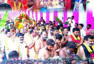 శరణు.. శరణు.. శబరీ గీరీషా..! – అంగరంగ వైభవంగా అయ్యప్ప పడిపూజ – పైలెట్ నివాసంలో మార్మోగిన శరణు గోష – స్వామికి పూజలు చేసిన మాజీ ఎమ్మెల్యే రోహిత్ రెడ్డి – తరలివచ్చిన అయ్యప్ప స్వాములు, రాజకీయ నేతలు తాండూరు,దర్శిని ప్రతినిధి : శరణు.. శరణు.. శబరీ గిరీషా.. అంటూ అయ్యప్ప స్వామి భజన కీర్తనలతో తాండూరులోని మాజీ ఎమ్మెల్యే పైలెట్ రోహిత్ రెడ్డి నివాసం అయ్యప్ప స్వామి నామస్మరణతో మార్మోగింది. బుధవారం ఆయన నివాసంలో … Continue reading శరణు.. శరణు.. శబరీ గీరీషా..!
