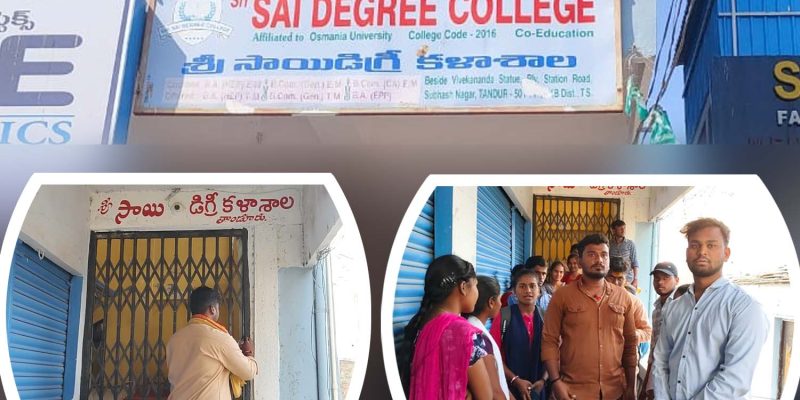 కాలేజీకి లాక్…! – రెండు నెలలుగా నో స్టడీస్.. క్లాసెస్ – ఆగ్రహించి తాళం వేసిన విద్యార్థులు – శ్రీ సాయి డిగ్రీలో కళాశాల నిర్వాకం – ఫ్యూచర్తో చెలగాటమొద్దంటూ మొర తాండూరు, దర్శిని ప్రతినిధి : చదువులు చెప్పడం లేదని విద్యార్థులు కాలేజీకే తాళం వేశారు. ఈ సంఘటన సోమవారం తాండూరు పట్టణంలో జరిగింది. వివరాల్లోకి వెళితే.. తాండూరు పట్టణం శాంత్ మహల్ చౌరస్తా సమీపంలో శ్రీ సాయి డిగ్రీ కాలేజీ కొనసాగుతోంది. ఈ కాలేజీకి మల్లేశం … Continue reading కాలేజీకి లాక్…!