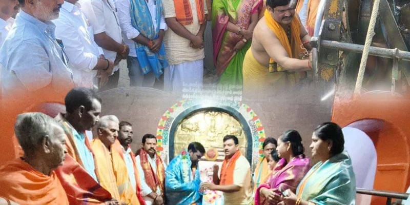 భద్రేశ్వరుని అనుగ్రహంతోనే అన్నదాన సత్రం – స్లాబ్ నిర్మాణానికి ఘనంగా పూజలు – పాల్గొన్న ఏఎంసీ చైర్మన్ పట్లోళ్ల బాల్ రెడ్డి – మున్సిపల్ మాజీ చైర్ పర్సన్ స్వప్న పరిమళ్ తాండూరు, దర్శిని ప్రతినిధి : తాండూరు పట్టణం భద్రేశ్వర దేవాలయంలో స్వామి అనుగ్రహంతో అన్నదాన సత్రం నిర్మాణం జరుగుతోందని పలువురు అన్నారు.శుక్రవారం దేవాలయ ప్రాంగణంలో నిర్మిస్తున్న అన్నదాన సత్రంకు స్లాబ్ నిర్మాణ పూజ చేశారు. ఈ కార్యక్రమానికి తాండూరు మార్కెట్ కమిటి చైర్మన్ పట్లోళ్ల … Continue reading భద్రేశ్వరుని అనుగ్రహంతోనే అన్నదాన సత్రం