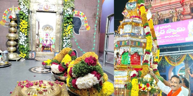 భద్రేశ్వరుడిపై భక్తి..! – 14ఏండ్లుగా గజమాల సమర్పణ – కోటం కుటుంభీకుల మొక్కుబడి తాండూరు, దర్శిని ప్రతినిధి: తాండూరు పట్టణ నడిబొడ్డున వెలసిన భద్రేశ్వరుడు కోరిన కోర్కెలు తీరుస్తూ భక్తుల కొంగుబంగారంగా నిలుస్తున్నారు. అందుకే ప్రతి యేడాది జరిగే జాతర ఉత్సవాల్లో భక్తులు తమ కోర్కెలు తీర్చిన భద్రేశ్వరుడికి మొక్కులు తీర్చుకుంటున్నారు. అలాంటి వారిలో తాండూరుకు చెందిన కోటం వీరప్ప కుటుంబ సభ్యులు ముందు వరుసలో నిలుస్తున్నారు. కోటం వీరప్ప కుటుంబ సభ్యులు గత 14 ఏండ్లుగా … Continue reading భద్రేశ్వరుడిపై భక్తి..!