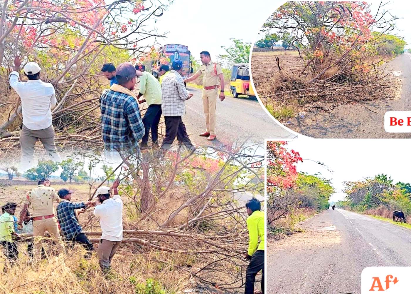 – రోడ్డుపై పడిన చెట్ల తొలగింపు