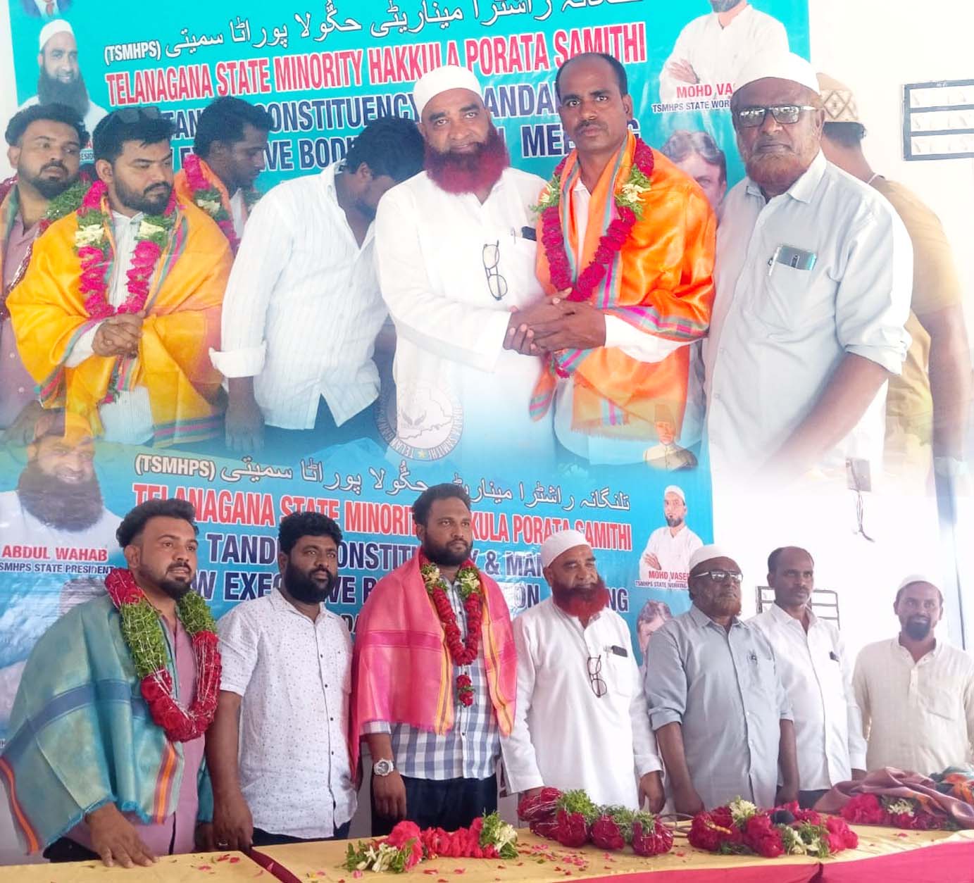 రాష్ట్ర ఉపాధ్యక్షులుగా న్యాయవాది జిలాని, తాండూరు నియోజకవర్గ అధ్యక్షులుగా సమీయోద్దీన్, ప్రధాన కార్యదర్శిగా అబ్రార్ లాల, వర్కింగ్ ప్రెసిడెంట్ గా మహమ్మద్ రఫీక్, పట్టణ అధ్యక్షులుగా మహమ్మద్ సాధిక్, వర్కింగ్ ప్రెసిడెంట్ గా మహమ్మద్ షఫీ, ప్రధాన కార్యదర్శిగా హఫీజ్, మహమ్మద్ యూసుఫ్ లను ఎన్నుకున్నారు. ఈ సందర్భంగా రాష్ట్ర అధ్యక్షులు వాహబ్ మాట్లాడుతూ మైనార్టీల హక్కుల సాధన కోసం కార్యవర్గ సభ్యులంతా ఐక్యంగా కృషి చేయాలని సూచించారు.