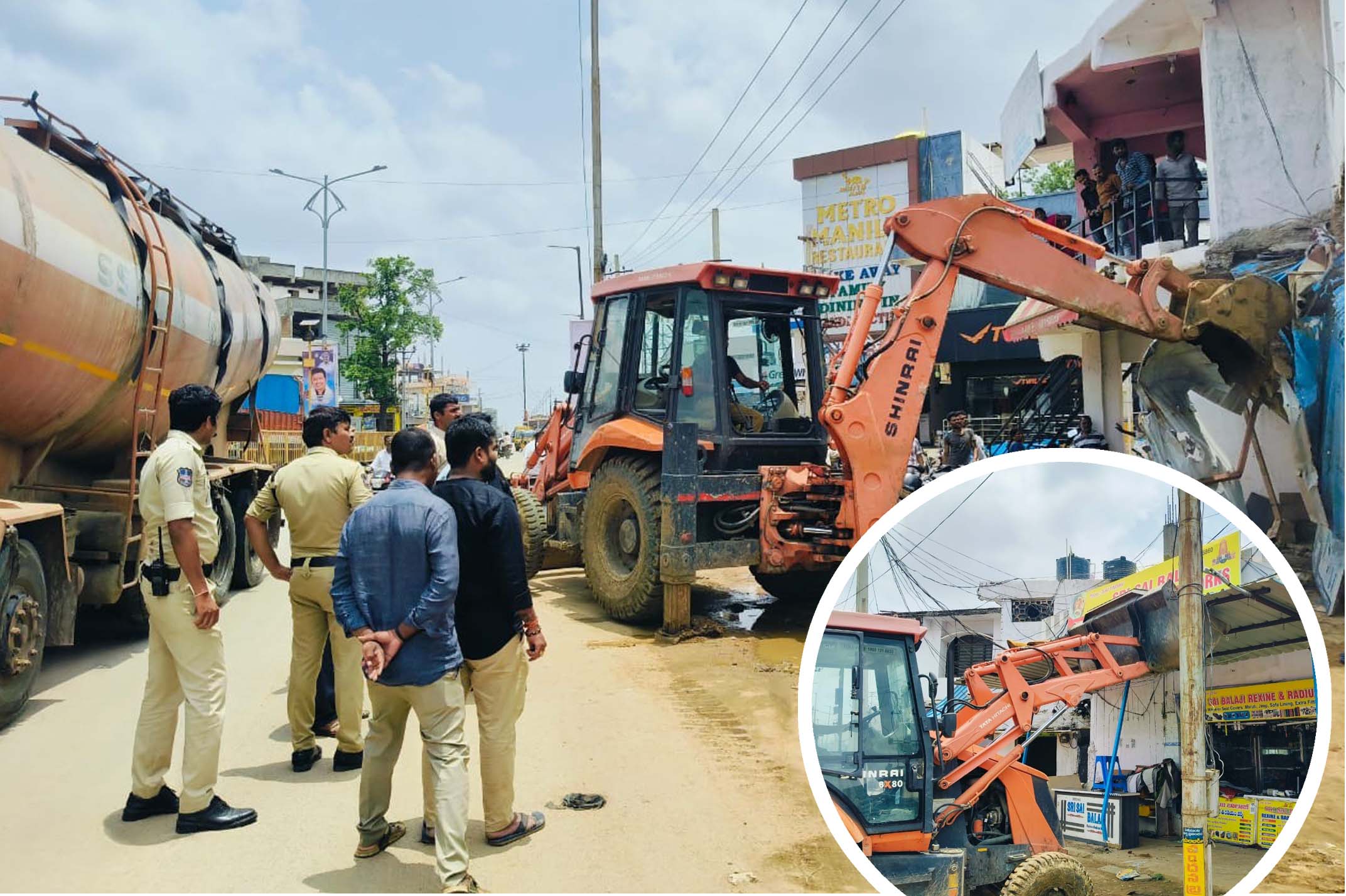 తాండూరు పట్టణ మీదుగా జాతీయ రోడ్డు నిర్మాణం జరుగుతున్న సంగతి తెలిసిందే. ఇటీవల రోడ్డు విస్తరణ పనులు ప్రారంభమయ్యాయి. నిర్మాణంలో ఇదివరకే రోడ్లకు ఇరువైపులా నిర్మించిన భారీ సైడ్ డ్రైన్ లపై పలువురు వ్యాపారులు దుకాణాల ముందు షెడ్లు, ఇతర నిర్మాణాలను ఏర్పాటు చేసుకున్నారు. ఈ నిర్మాణాల వల్ల ట్రాఫిక్ తో పాటు ప్రజలకు ఇబ్బందులు కలుగుతున్నాయి. గత రెండు రోజుల నుంచి తాండూరు పట్టణంలో ప్రభుత్వ ఆదేశాల మేరకు అధికారులు ఆక్రమణల తొలగింపు చేపడుతున్నారు. తాజాగా శుక్రవారం పట్టణ పోలీసుల సహాకారంతో మున్సిపల్ టౌన్ ప్లానింగ్, జవాన్లు ఆక్రమణలు తొలగించారు. మున్సిపల్ జేసీబీ స హాయంతో దుకాణాల ముందు నిర్మించుకున్న షెడ్లు, ఇతర నిర్మాణాలను తొలగించారు. నిర్మాణాల తొలగింపు సమయంలో వ్యాపారుల నుంచి వ్యతిరేకత కనిపించింది. అధికారులు ఎలాంటి నోటీసులు, సమాచారం అందించకుండా తొలగిపు చర్యలు తీసుకోవడం పట్ల ఆగ్రహం వ్యక్తం చేశారు. పోలీసులు, అధికారులు నచ్చజెప్పే ప్రయత్నం చేశారు. రోడ్లపై నిర్మించిన ఆక్రమణలు తొలగించారు.