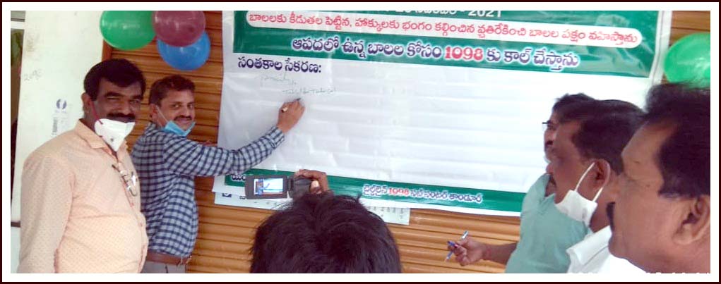 తీసుకుంటామని తెలిపారు. ఎవరైన ఆప‌ద‌లో ఉంటే 100తో పాటు చైల్డ్ లైన్ 1098కు కాల్ చేయాలని సూచించారు. ఈ కార్యక్రమంలో డిప్యూటీ తహసీల్దార్ ధనుంజయ, ఏపీఓ రతన్ సింగ్, ఏపిఎం ఆనందం, ఐసీడీఎస్ సూపర్ వైజర్ యాదమ్మ, విఆర్వోలు, సర్పంచులు, పంచాయతీ కార్యదర్శులు, చైల్డ్ లైన్ కోఆర్డినేటర్ వై వెంకటేష్, సిబ్బంది తదితరులు పాల్గొన్నారు.
