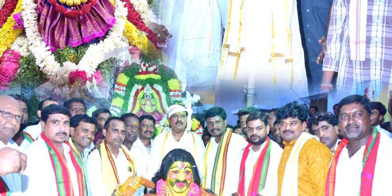 శోభాయామానంగా కాళీకాదేవి ఉత్సవ ఊరేగింపు – దర్శించుకున్న తాండూరు ఎమ్మెల్యే మనోహర్ రెడ్డి – అమ్మవారికి పట్టు వస్త్రాల సమర్పణ తాండూరు, దర్శిని ప్రతినిధి : తాండూరు పట్టణంలోని కాళికాదేవి అమ్మవారి ఉత్సవ ఊరేగింపు శోభాయామానంగా కొనసాగింది. ఆషాడ మాసం బోనాల ఉత్సవాలు రెండో రోజు సోమవారం ముగిశాయి. ఉత్సవాలలో భాగంగా సాయంత్రం అమ్మవారి ఉత్సవ ఊరేగింపు నిర్వహించారు. ఆలయం నుంచి ప్రారంభమైన ఊరేగింపు పుర ప్రధాన వీదుల గుండ కొనసాగింది. అంతకుముందు తాండూరు ఎమ్మెల్యే మనోహర్ … Continue reading శోభాయామానంగా కాళీకాదేవి ఉత్సవ ఊరేగింపు