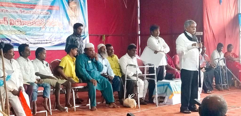 సర్కారుతో తేల్చుకోవడమే..! – పేదల సంక్షేమం కోసం ఎమ్మార్పీఎస్ పోరాటం – పెంచిన ఫించన్లు వెంటనే అమలు చేయాలి – వచ్చే నెల 3న మహాగర్జనకు తరలిరండి – ఎమ్మార్పీఎస్ వ్యవస్థాపక అధ్యక్షులు మందకృష్ణ మాదిగ తాండూరు, దర్శిని ప్రతినిధి : ఎన్నికల్లో ఇచ్చిన హామీ మేరకు పెంచిన ఫించన్లను అమలు చేసుకునేందుకు సర్కారుతో తేల్చుకుందామని ఎమ్మార్పీఎస్ వ్యవస్థాపక అధ్యక్షులు మందకృష్ణ మాదిగ అన్నారు. శనివారం వికలాంగుల హక్కుల పోరాట సమితి ఆధ్వర్యంలో తాండూరు పట్టణం గగ్రాణి … Continue reading సర్కారుతో తేల్చుకోవడమే..!