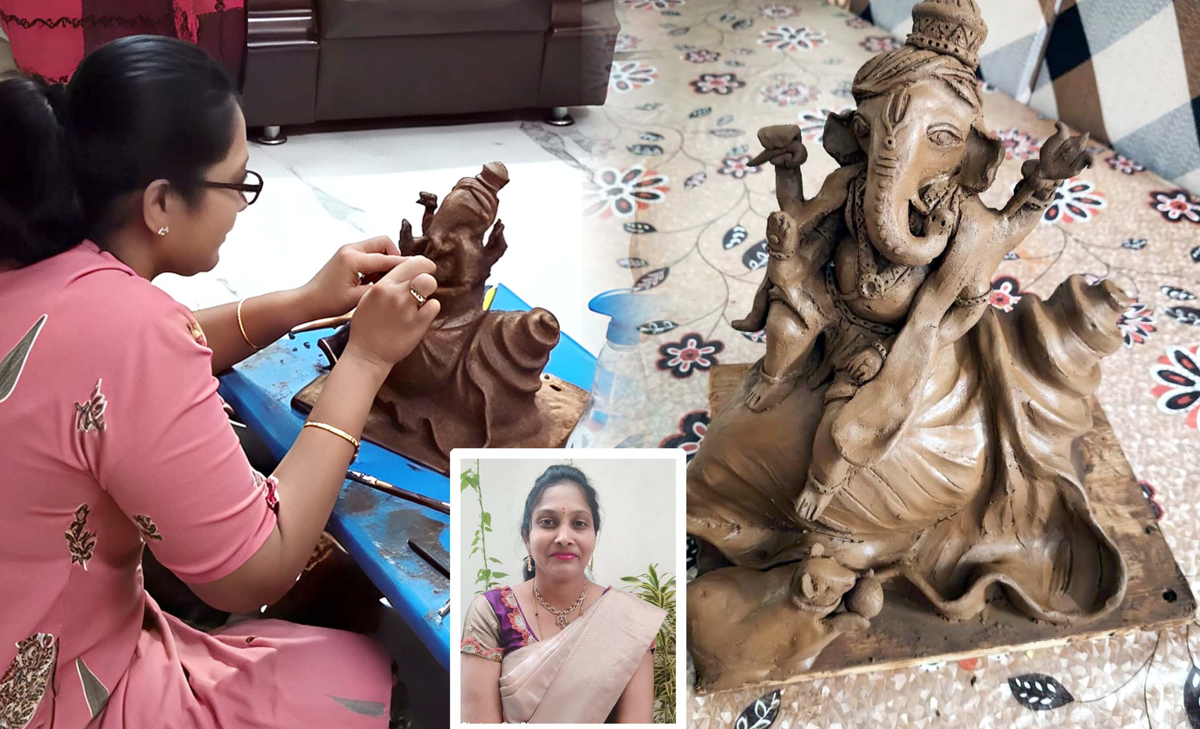 వినాయక చవితి సందర్భంగా ఆమె వారి ఇంట్లో మట్టి వినాయకున్ని తయారు చేశారు. ప్రతి యేడాది వినాయక చవితి సందర్భంగా మట్టి వినాయకున్ని తయారు చేస్తున్నారు. ఏడేళ్లుగా ఇంట్లోనే మట్టి వినాయకున్ని తయారు చేసి.. ఆ విగ్రహాన్నే ప్రతిష్టించి పూజిస్తున్నారు. అయితే మట్టి వినాయకున్ని తయారు చేస్తున్న ఆమె నైపుణ్యం అందరిని అబ్బుర పరుస్తోంది. ఎంతో నియమ నిష్టలతో వినాయకున్ని తయారు చేయడం ఆకట్టుకుంది.