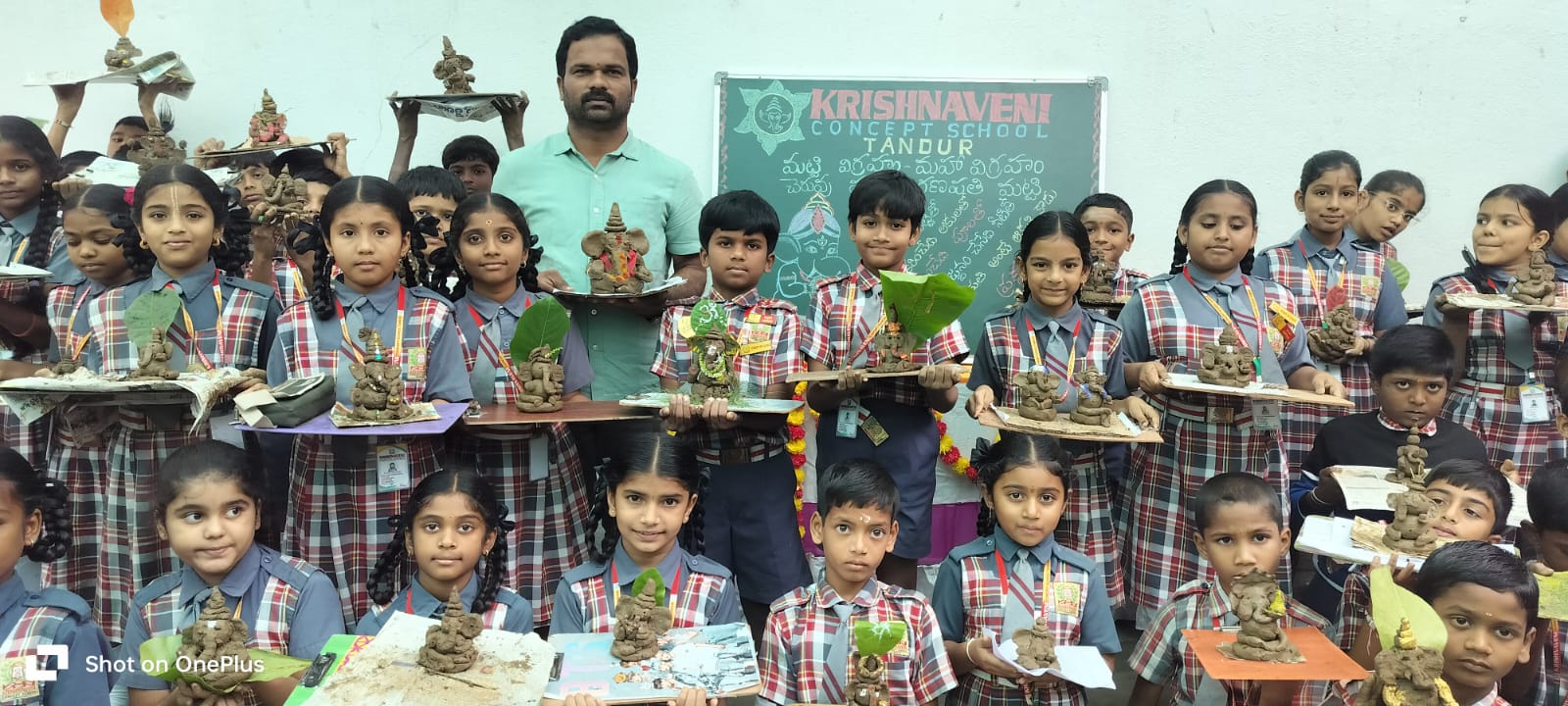 తాండూరు, దర్శిని ప్రతినిధి : తాండూరు పట్టణం పోట్లీ మహరాజ్ దేవాలయంలోని క్రిష్ణవేణి కాన్సెఫ్ట్ స్కూల్‌(కేవీసీస్)లో వినాయక చవతి సందడి నెలకొంది.