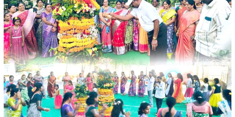 బల్దియాలో బతుకమ్మ జోష్..! – కార్యాలయంలో ఘనంగా వేడుకలు – పాల్గొన్న కమీషనర్ యాదగిరి, అధికారులు – ఆడిపాడిన ఆర్పీలు, ఉద్యోగులు తాండూరు, దర్శిని ప్రతినిధి : తాండూరు పట్టణంలోని మున్సిపల్ కార్యాలయంలో బతుకమ్మ వేడుకల జోష్ నిండుకుంది. సోమవారం మున్సిపల్ కమీషనర్ యాదగిరి ఆధ్వర్యంలో బతుకమ్మ వేడుకలను నిర్వహించారు. కార్యాలయ ఆవరణలో బతుకమ్మను అందమైన పూలతో పేర్చి అలంకరించారు. మున్సిపల్ కమీషనర్ యాదగిరి బతుకమ్మను భక్తిశ్రద్దలతో పూజలు నిర్వహించారు. కార్యాలయంలో పనిచేస్తున్న ఉద్యోగులు, మహిళ ఉద్యోగులు … Continue reading బల్దియాలో బతుకమ్మ జోష్..!
