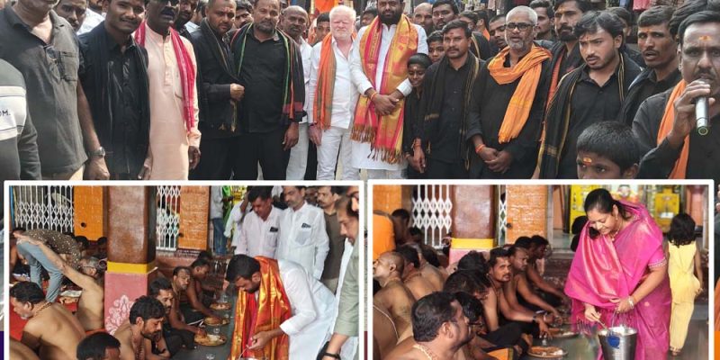 మార్మోగిన అయ్యప్ప నామస్మరణ – వైభవంగా అయ్యప్ప దేవాలయ వార్షికోత్సవం – ఊరేగింపు, పూజలో పాల్గొన్న మాజీ ఎమ్మెల్యే రోహిత్ రెడ్డి – స్వాములకు సద్ది వడ్డించిన మాజీ చైర్ పర్సన్ స్వప్న పరిమళ్ తాండూరు, దర్శిని ప్రతినిధి : తాండూరు పట్టణంలో అయ్యప్ప నామస్మరణ మార్మోగింది. గురువారం పట్టణంలోని అయ్యప్ప స్వామి దేవాలయ వార్షికోత్సవ వేడుకలను వైభవంగా జరుపుకున్నారు. పట్టణ పురవీధుల్లో అయ్యప్ప స్వామి ఊరేగింపు శోభాయామానంగా కొనసాగింది. అయ్యప్ప స్వామి దేవాలయ వార్షికోత్సవ వేడుకలలో … Continue reading మార్మోగిన అయ్యప్ప నామస్మరణ