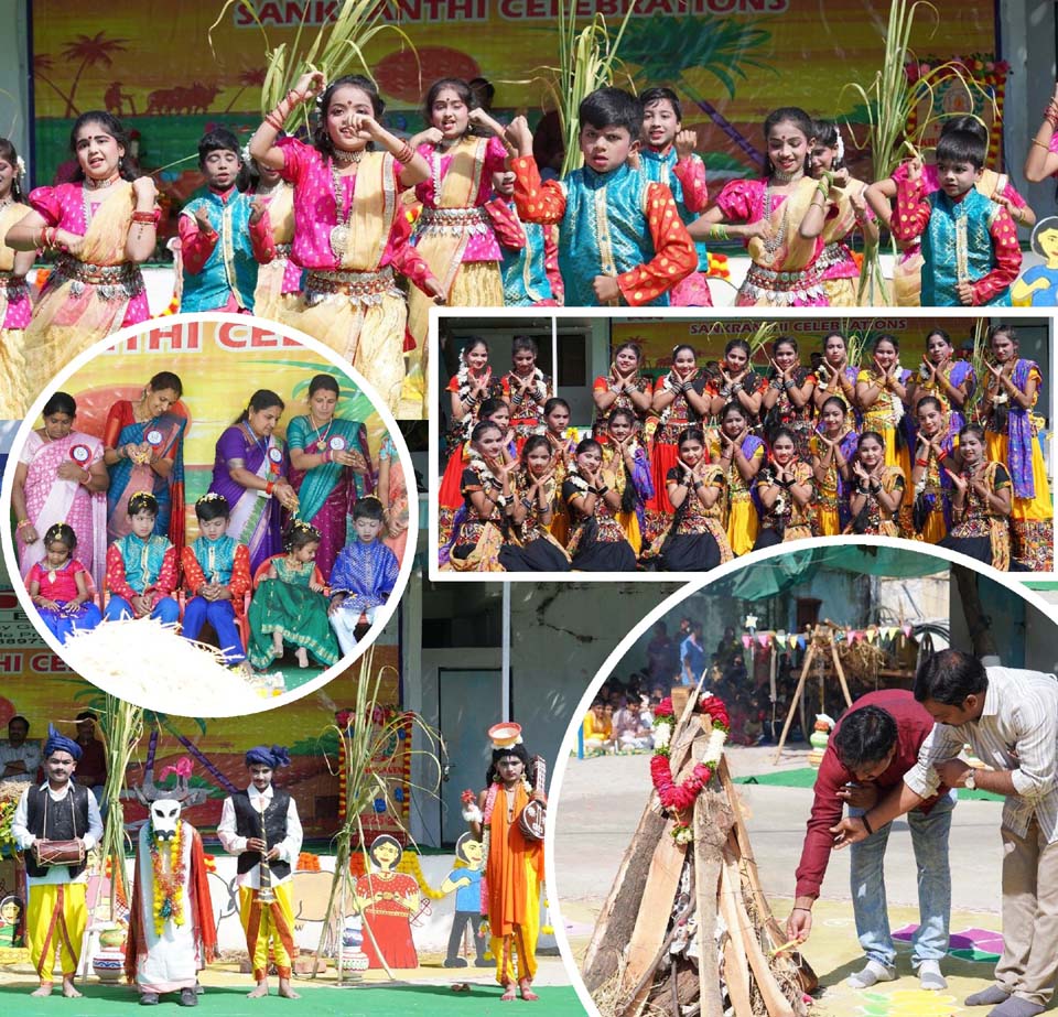 విద్యార్థినిలు, మహిళ ఉపాధ్యాయులు సంక్రాంతి బొడ్డెమ్మల ఆట పాటలతో సందడి చేశారు. పాఠశాల విద్యార్థులకు వారి తల్లిదండ్రులు పాఠశాలలోనే భోగి పండ్లను చల్లి సంతోషం పంచుకున్నారు. విద్యార్థులు నృత్య ప్రదర్శనలు కూడా ఆకట్టుకున్నాయి. సంక్రాంతి పర్వదినం విశిష్టతను తెలుపుతూ విద్యార్థులు, టీచర్లు జరుపుకున్న సంబరాలపై ప్రిన్సిపల్ ప్రశాంత్, డైరెక్టర్ సతీష్, యాజమాన్యం సభ్యులు అభినందించారు. పాఠశాలలో నాణ్యమైన విద్యతో పాటు సంప్రదాయాలపై అవగాహన పెంచుతున్నట్లు తెలిపారు. ఈ కార్యక్రమంలో టీచర్లు, తల్లిదండ్రులు, సిబ్బంది పాల్గొన్నారు.