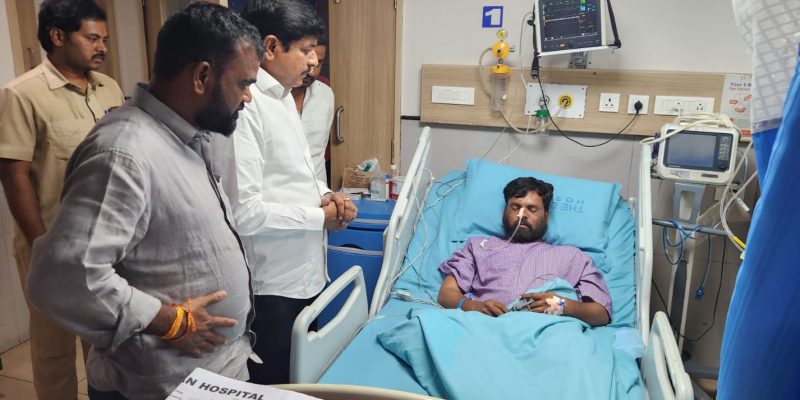 కుర్వ జగదీష్కు ఎమ్మెల్యే పరామర్శ – ఆసుపత్రికి వెళ్లి పరిశీలించిన మనోహర్ రెడ్డి తాండూరు, దర్శిని ప్రతినిధి : అకస్మాత్తుగా అనారోగ్యానికి గురై ఆసుపత్రిలో చేరిన తాండూరు బీజేపీ యువనాయకుడు కుర్వ జగదీష్ ను ఎమ్మెల్యే మనోహర్ రెడ్డి పరామర్శించారు. రెండు రోజుల క్రితం అస్వస్థతకు గురైన కుర్వ జగదీష్ ను మెరుగైన వైద్యం కోసం హైదరాబాద్ దక్కన్ ఆసుపత్రికి తరలించారు. ఈ విషయం తెలుసుకున్న ఎమ్మెల్యే మనోహర్ రెడ్డి ఆదివారం ఆసుపత్రికి చేరుకున్నారు. ఆసుపత్రిలో చికిత్స … Continue reading కుర్వ జగదీష్కు ఎమ్మెల్యే పరామర్శ