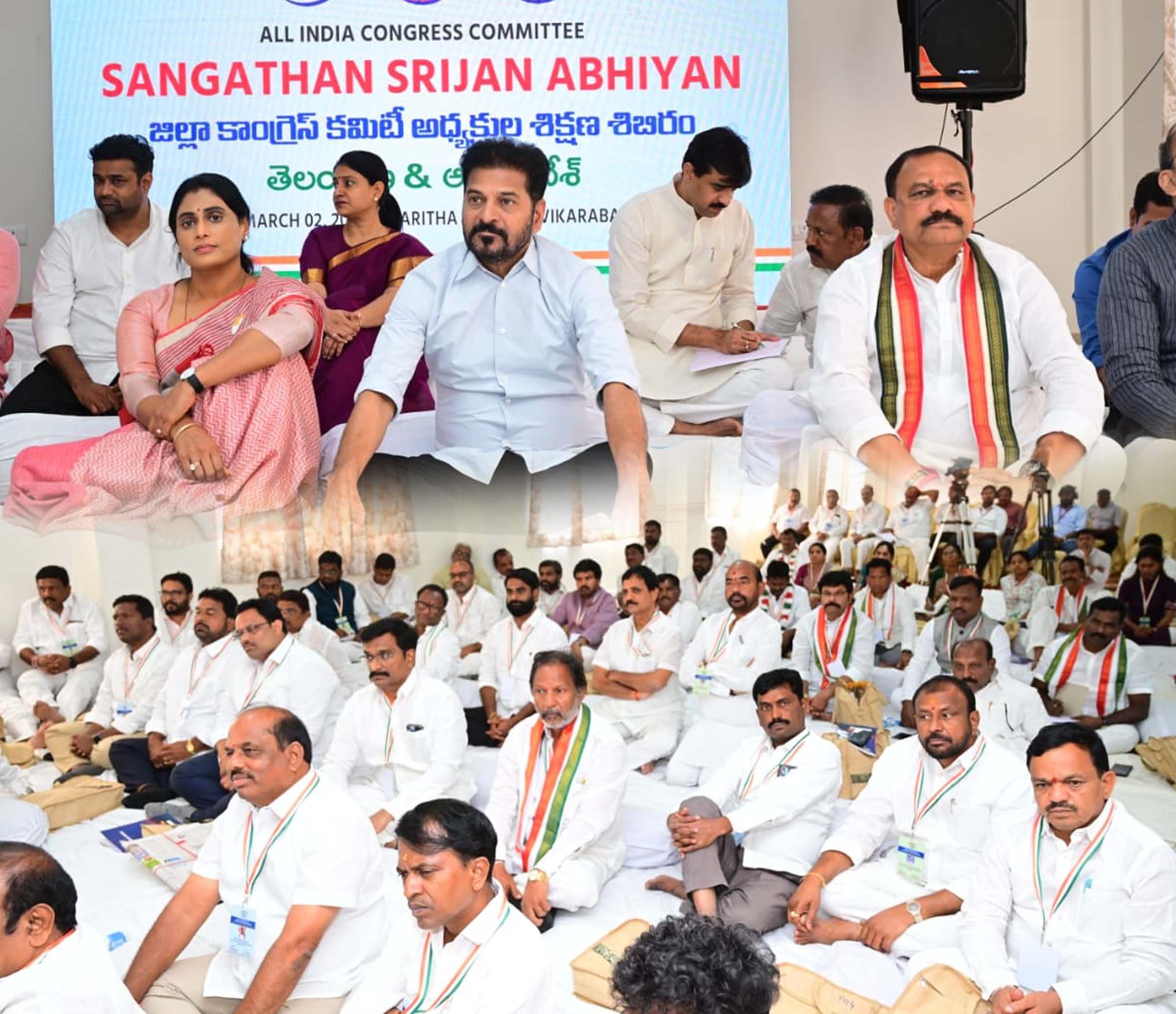 సంఘటన సృజన్ అభియాన్ కార్యక్రమం భాగంగా ఆంధ్రప్రదేశ్, తెలంగాణ రాష్ట్రాల జిల్లా కాంగ్రెస్ కమిటీ (డిసిసి) అధ్యక్షుల కోసం నిర్వహిస్తున్న పది రోజుల ప్రత్యేక శిక్షణా శిబిరం శనివారం అట్టహాసంగా ప్రారంభమైంది. వికారాబాద్ జిల్లా అనంతగిరిలోని హరిత రిసార్ట్లో ఏర్పాటు చేసిన కార్యక్రమానికి ముఖ్య అతిథిగా ముఖ్యమంత్రి రేవంత్ రెడ్డి గారు హాజరయ్యారు. ఆయనతో పాటు టీపీసీసీ అధ్యక్షులు, ఎమ్మెల్సీ మహేష్ కుమార్ గౌడ్, ఏపీసీసీ అధ్యక్షురాలు వైఎస్ షర్మిల, సీడబ్ల్యూసీ సభ్యులు చల్లా వంశీ చందర్ రెడ్డి, ఏఐసీసీ ఇంచార్జీ కార్యదర్శి సచిన్ సావంత్, మంత్రులు శ్రీధర్ బాబు, పొన్నం ప్రభాకర్, పొంగులేటి శ్రీనివాస్ రెడ్డి, ప్రభుత్వ సలహాదారు వేం నరేందర్ రెడ్డి, చీఫ్ విప్ మహేందర్ రెడ్డి, ఎమ్మెల్యే రామ్మోహన్ రెడ్డి తదితరులు పాల్గొన్నారు. ఈ సందర్భంగా సీఎం రేవంత్ రెడ్డి మాట్లాడుతూ, పార్టీ బలోపేతానికి కేడర్ శిక్షణ అత్యంత అవసరమని పేర్కొన్నారు. జిల్లా అధ్యక్షులు పార్టీ సిద్ధాంతాలను గ్రామస్థాయికి తీసుకెళ్లే వారధులని అభివర్ణించారు. ప్రజా సమస్యల పరిష్కారంలో ముందుండాలని సూచించారు. ప్రభుత్వ సంక్షేమ పథకాలను సమర్థంగా ప్రజలకు చేరవేయడంలో కీలక పాత్ర పోషించాలని పిలుపునిచ్చారు.