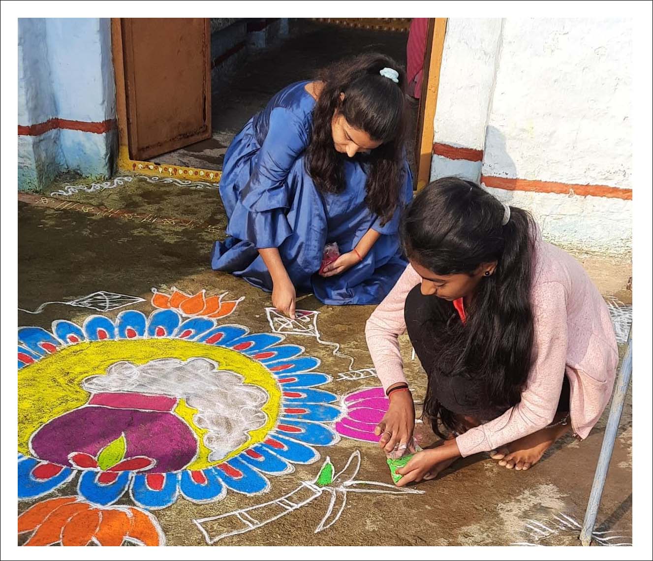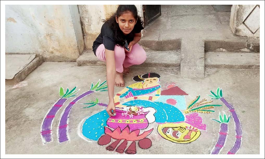 – రంగవల్లులతో విరాజిల్లిన తెలుగు ఇళ్లు