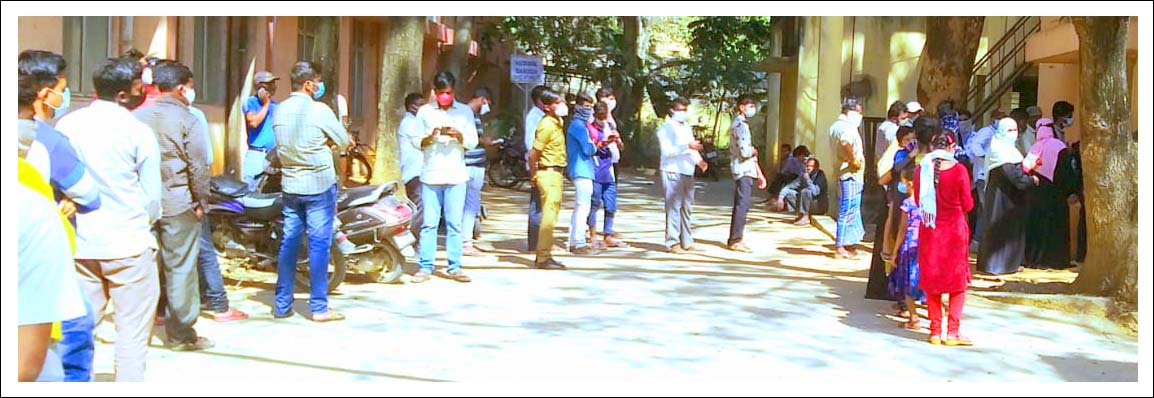 ఉదయం నుంచే పరీక్షా నిర్దారణ కేంద్రం వద్ద బారులు తీరుతున్నారు. అనుమానంతో వస్తున్న ప్రజల కోసం ఆసుపత్రి యంత్రాంగం కూడ పరీక్షల సంఖ్యను పెంచింది. యువకులు, పెద్దలు, మహిళలు పెద్ద ఎత్తున తరలివచ్చి పరీక్షలను చేయించుకుంటున్నారు. వివిధ శాఖల సిబ్బంది కూడ బారులు తీరి పరీక్షలు చేయించుకోవడం కనిపించింది.
