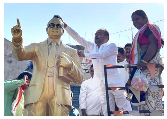 పెద్దేముల్, దర్శిని ప్రతినిధి: భారత రాజ్యాంగాన్నిమార్చాలన్న తెలంగాణ రాష్ట్ర ముఖ్యమంత్రి కేసీఆర్పై కేసు నమోదు చేయాలని కాంగ్రెస్ పార్టీ పీసీసీ డెలిగేట్ సభ్యులు, పెద్దేముల్ జెడ్పీటీసీ ధారాసింగ్, పార్టీ వికారాబాద్ జిల్లా అధ్యక్షురాలు శోభారాణిలు డిమాండ్ చేశారు. టీపీసీసీ అధ్యక్షులు రేవంత్ రెడ్డి పిలుపు మేరకు ఆదివారం పెద్దేముల్ మండల కేంద్రంలో జిల్లా మహిళా అధ్యక్షురాలు శోభారాణి ఆధ్వర్యంలో అంబేద్కర్ విగ్రహానికి పాలాభిషేకం నిర్వహించారు. ధారాసింగ్, శోభారాణిలతో పాటు రాష్ట్ర మైనార్టీ సెల్ కన్వీనర్ రియాజ్, ఉప సర్పంచ్ శ్రీనివాస్ రెడ్డి, సీనియర్ నేత న్యాయవాది ఎల్లారెడ్డి, వార్డు సభ్యులు డివై. అరవింద్, ఫయాజ్, మల్లేశం, జై భీమ్ యువజన సంఘం సభ్యులు రఘు అంబేద్కర్ విగ్రహానికి పాలాభిషేకం చేశారు. ఈ సందర్భంగా వారు మాట్లాడుతూ భారత రత్న బీఆర్ అంబేద్కర్ దేశంలో అందరికి అమోదయోగ్యమైన రాజ్యాంగాన్ని అందించారని గుర్తుచేశారు. అయన రచించిన రాజ్యాంగంతోనే తెలంగాణ రాష్ట్రం ఏర్పాటయ్యిందని అన్నారు. అలాంటి రాజ్యాంగంపై సీఎం కేసీఆర్ వ్యాఖ్యలు చేయడం సిగ్గుచేటన్నారు. రాజ్యాంగంపై వ్యాఖ్యలు చేసిన సీఎం కేసీఆర్ దేశ ప్రజలందరికీ బహిరంగంగా క్షమాపణ చెప్పాలని డిమాండ్ చేశారు. అదేవిధంగా కేసీఆర్ పై పోలీసులు కేసు నమోదు చేయాలని డిమాండ్ చేశారు. క్షమాపణ చెప్పకపోతే కాంగ్రెస్ పార్టీ ఆధ్వర్యంలో పెద్ద ఎత్తున ఆందోళన చేపడతామని హెచ్చరించారు.