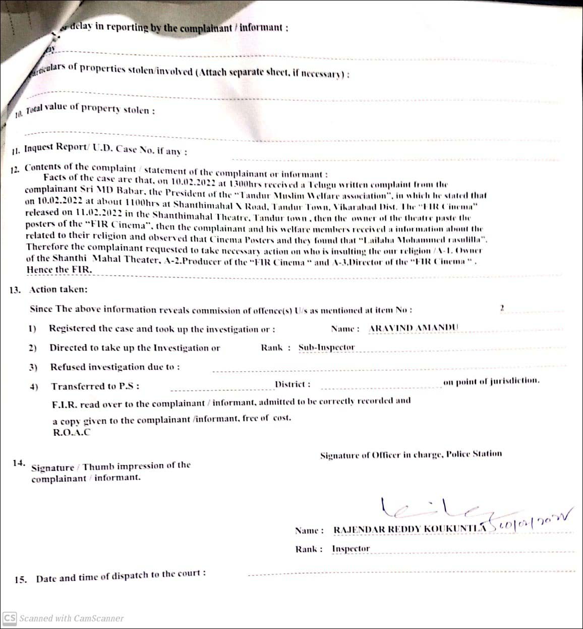ఎఫ్ఐఆర్ వివాదంపై ఎఫ్ఐఆర్