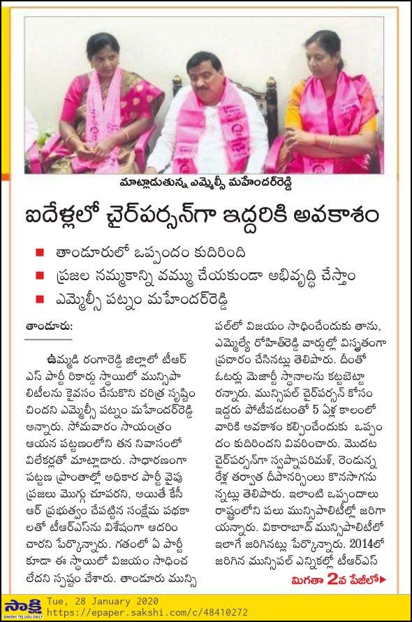 – ఎమ్మెల్సీ సమక్షంలోనే రెండున్నర ఏళ్ల ఒప్పందం