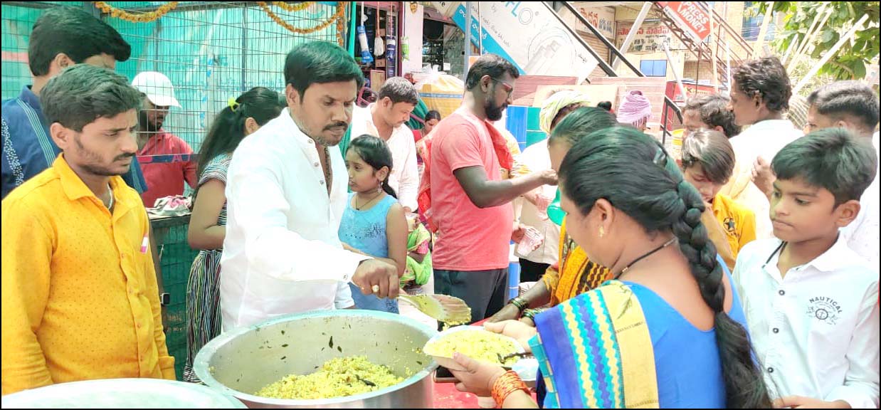 – మ‌జ్జిగ పంపిణీ కేంద్రంలో పేద‌ల‌కు అన్న‌దానం
