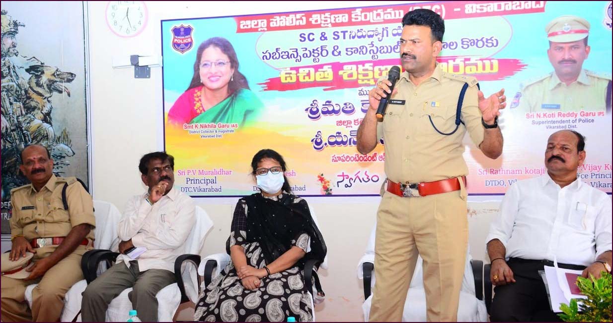 వికారాబాద్ జిల్లా ఎస్పీ ఎన్.కోటిరెడ్డి మాట్లాడుతూ ఆపోహలకు తావు లేకుండా ఆత్మ విశ్వాసంతో చదువుతూ ముందుకు సాగాలని అన్నారు. పోలీస్ శాఖలో ఉద్యోగం సంపాందించాలంటే కృషి, పట్టుదల చాల అవసరమని అన్నారు. పేదరికం, ఆర్థిక ఇబ్బందులు చదువుకు అడ్డుకాదని, నిరాశ చెందకుండా కృషి చేయాలని సూచించారు. రెగ్యులర్ చదువులకు, పోటీ పరీక్షలకు ఎంతగానో తేడా ఉంటుందని దానికనుగుణంగా చదుకోవాలని అన్నారు. అందరూ క్రమశిక్షణతో, కష్టపడి మీ తల్లి తండ్రులు కంటున్న కళలను సహకారం చేయాలన్నారు. పోలీసు కొలువు సాకారం చేసేందుకు అందిస్తున్న ఈ సువర్ణ అవకాశాన్ని సద్వినియోగం చేసుకోవాలని సూచించారు. శిక్షణ తీసుకుంటున్న అభ్యర్ధులకు కావలసిన స్టడీ మెటీరియల్ అందుబాటులో ఉంచడం జరుగుతుందని తెలిపారు. ఈ కార్యక్రమంలో జిల్లా ఎస్సీ అభివృద్ధి అధికారి మల్లేశం, జిల్లా ట్రైబల్ అభివృద్ధి అధికారి కోటాజీ, DTC అదనపు ఎస్పి మురళీధరన్, డిఎస్పి విజయ్ కుమార్, మల్లేశం DSWO, ఏఆర్ డిఎస్పి సత్యనారాయణ, RI’s CI’s మరియు సిబ్బంది పాల్గొనడం జరిగింది.