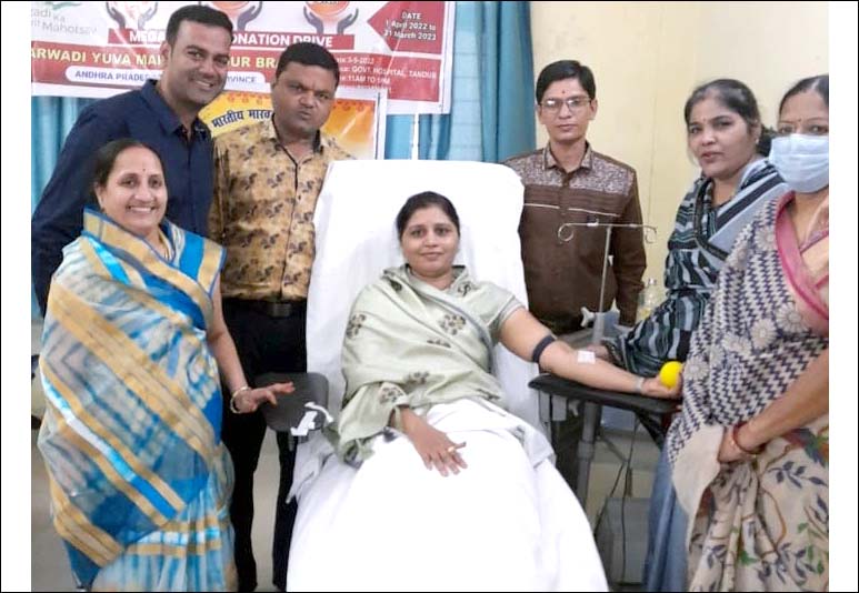 తాండూరు, ద‌ర్శిని ప్ర‌తినిధి: తాండూరు మార్వాడి యువ‌మంచ్ మాన‌వ‌త్వాన్ని చాటుకుంటోంది. తాండూరు ప్ర‌భుత్వ‌ జిల్లా ఆసుపత్రిలోని రక్తనిధి కేంద్రంలో ర‌క్త‌నిల్వ‌ల కొర‌త ఏర్ప‌డ‌కుండా మార్వాడి యువమంచ్ విశేష సేవ‌ల‌ను అందిస్తుంది. ప్ర‌తినేల 8 నుంచి 10 యూనిట్ల వ‌ర‌కు ర‌క్త‌దానం చేస్తూ కొర‌త లేకుండా స‌హాకారం అందిస్తుంది. మంగ‌ళ‌వారం కూడ ఆసుప‌త్రిలో ర‌క్త‌దాన శిబిరాన్ని ఏర్పాటు చేసింది.