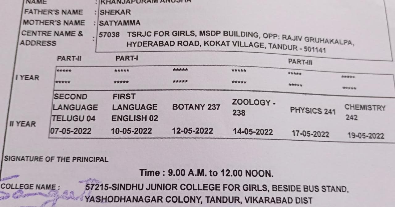 హాల్ టిక్కెట్లో తప్పుగా పరీక్షా కేంద్రం పేరు