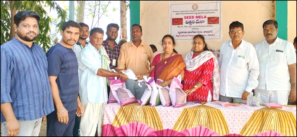 అనంతరం పరిశోధన స్థానం ఆధ్వర్యంలో రూపొందించిన తెలంగాణ సీడ్స్ టీడీఆర్జీ-24, టీడీఆర్జీ-59, ఆశ రకాల విత్తనాలను ఒక్క ప్యాకెట్ ను రూ. 520ల చొప్పున రైతులకు అందించారు. ఈ కార్యక్రమంలో పరిశోధన స్థానం శాస్త్రవేత్తలు డా. సందీప్, డా. మిన్ని, డా.యమున, ఏఈఓ హరీష్ చందర్, రమేష్ చంద్రుడు, సోమ్లా, వివిధ ప్రాంతాల రైతులు తదితరులు పాల్గొన్నారు.