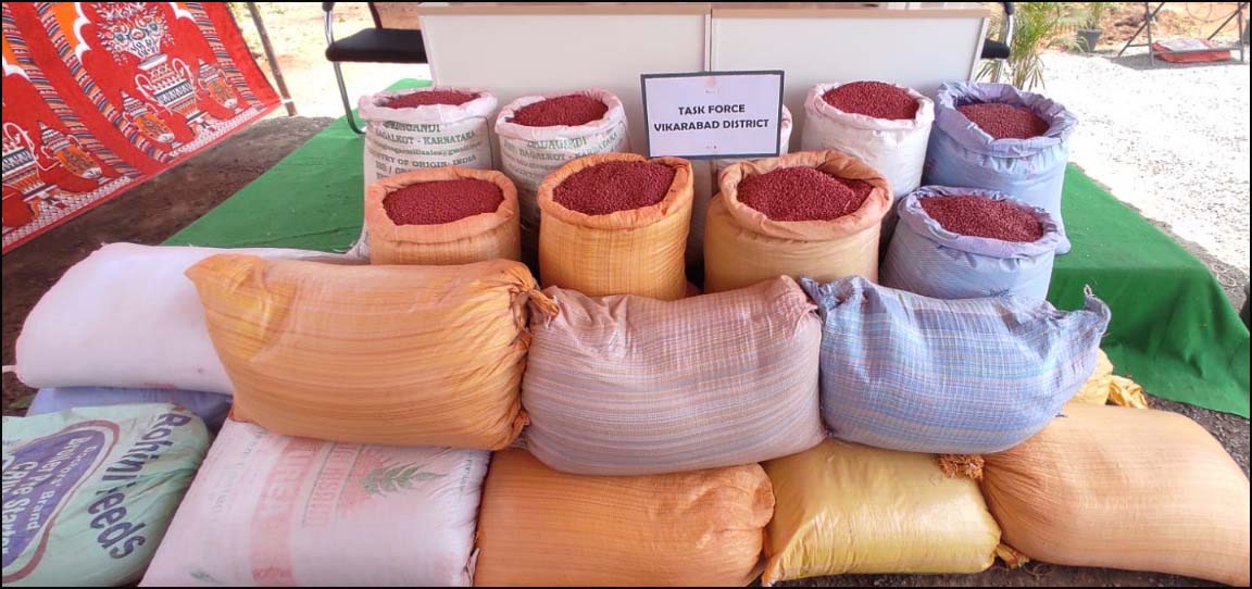 వికారాబాద్, ద‌ర్శిని ప్ర‌తినిధి : రైతుల మెడ‌కు నైసుగా న‌కిలీ విత్త‌నాల గాలం వేస్తున్నకేటుగాడిని వికారాబాద్ జిల్లా పోలీసులు క‌ట‌క‌టాల వెన‌క్కి పంపారు. జిల్లా ఎస్పీ ఆధ్వ‌ర్యంలో ఏర్పాటు చేసిన టాస్క్‌ఫోర్స్ బృందం మంగ‌ళ‌వారం 10 క్వింటాళ్ల న‌కిలీ ప‌త్తి విత్త‌నాల‌ను స్వాదీనం చేసుకున్నారు. బుధ‌వారం వికారాబాద్ టౌన్ పోలీస్ స్టేషన్‌లో ఏర్పాటు చేసిన మీడియా స‌మావేశంలో జిల్లా ఎస్పీ ఎన్‌.కోటిరెడ్డి హాజ‌రై కేసు వివ‌రాల‌ను వెల్ల‌డించారు. మంగ‌ళ‌వారం సాయంత్రం సిద్దులూర్ గ్రామములో బస్టాండు వద్ద జిల్లాలోని యాలాల మండ‌లం సంగెంకుర్దు గ్రామానికి చెందిన గంజిప‌ల్లి శ్రీ‌నివాస్ అనే వ్యాపారి రైతుల‌కు లూసుగా న‌కిలీ విత్త‌నాల‌ను విక్ర‌యిస్తున్నాడు. విశ్వ‌స‌నీయ స‌మాచారం అందుకున్న‌ టాస్క్ ఫోర్స్ ఇంచార్జ్ సీఐ వెంకటేషం వికారాబాద్ సీఐ రాజశేఖర్, వికారాబాద్ మండల వ్యవసాయ అధికారి పాండురంగా, సిబ్బందితో క‌లిసి దాడులు చేసి వ్యాపారిని అదుపులోకి తీసుకున్నారు. అత‌ని వ‌ద్ద‌ ఎలాంటి ప‌త్రాలు లేక‌పోవ‌డంతో లోతుగా విచార‌ణ జ‌రిపారు. ఈ క్ర‌మంలో అతని స్వగ్రామము సంగెంకుర్దులో ఉన్న శ్రీ‌నివాస్ ఇంటి వ‌ద్ద త‌నిఖీలు చేప‌ట్టారు. ఈ త‌నిఖీలో గుట్టుగా నిల్వ ఉంచిన దాదాపు 10 క్వింటాళ్ళ నకిలి పత్తి విత్తనాలను గుర్తించారు. 20 బస్తాల‌లో వీటిని నిల్వ చేసి ఉంచి.. వివిధ ప్రాంతాల‌లో విక్ర‌యానికి పాల్ప‌డుతున్న‌ట్లు త‌నిఖీలో వెల్ల‌డైంది. వీటి విలువ సుమారుగా రూ.,12,24,000/-లు ఉంటుందని నిర్దారించారు.
