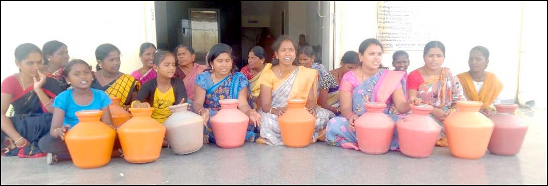 24వ వార్డులో గత కొన్ని సంవత్సరాల తాగునీటి సమస్యల తాండవిస్తోంది. అధికారులకు చెప్పిన పరిష్కారం కావడం లేదని ఆరోపిస్తూ ఖాళీ బిందెలతో మున్సిపల్ కార్యాలయానికి చేరుకున్నారు. ముఖ ద్వారం వద్ద బైటాయించి నిరసన వ్యక్తం చేశారు. ఈ విషయం తెలుసుకున్న బీజేపీ జిల్లా ప్రధాన కార్యదర్శి యు. రమేష్ కుమార్ కార్యాలయానికి చేరుకుని మహిళ ఆందోళనకు మద్దతు తెలిపారు. తాగునీటి సమస్యల పరిష్కరించాలని డిమాండ్ చేస్తూనే అధికారులకు, ప్రభుత్వానికి వ్యతిరేకంగా నినాదాలు చేశారు.
