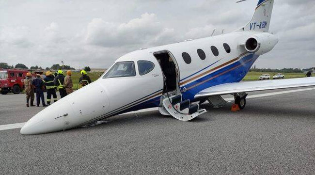 రన్వేపై దొర్లిన విమానం..!